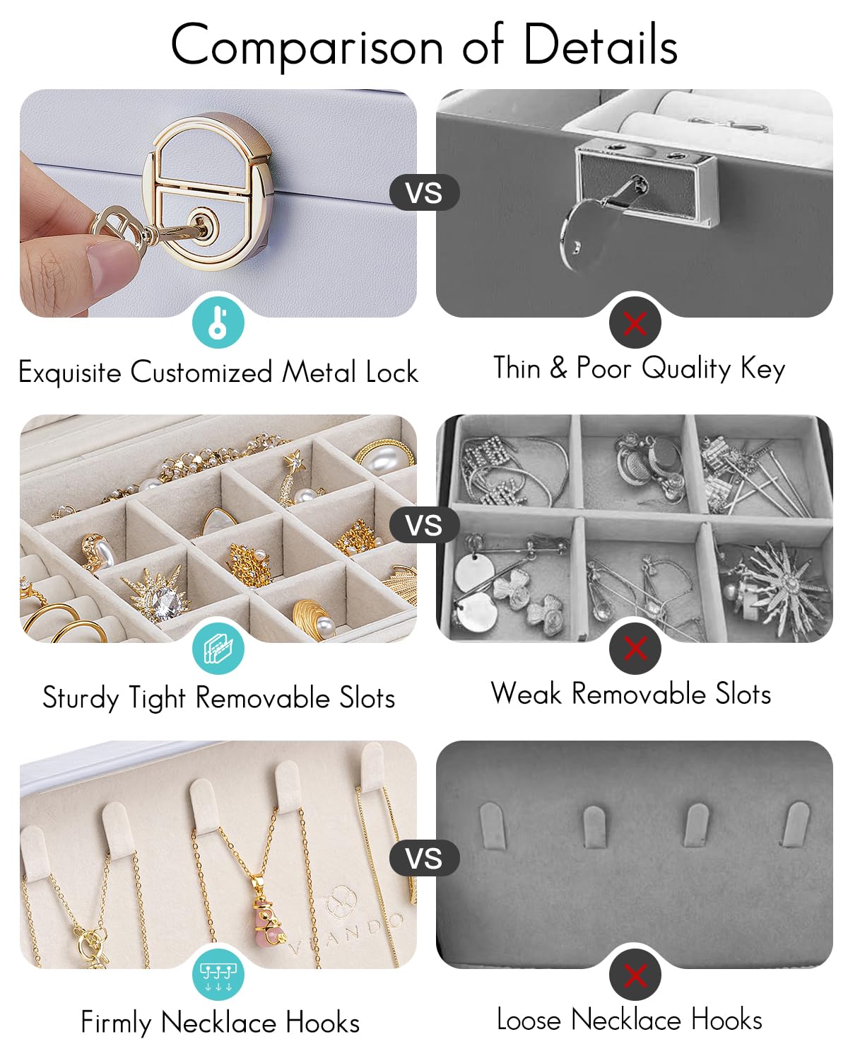 Vlando Jewelry Box for Girls Women, Double-layer Jewelry Case, Lockable Jewelry Box, Jewelry Storage Box for Rings Earrings Bracelets, Jewelry Organizer