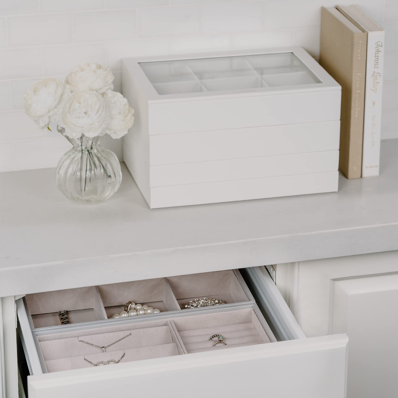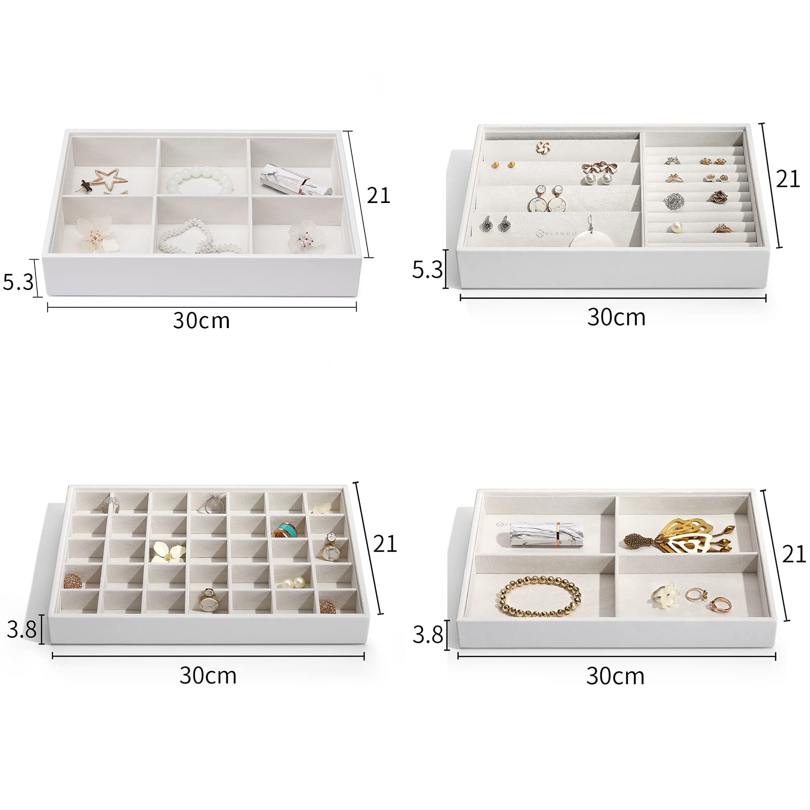 🌹【4 Colors For You to Choose】The jewelry storage box comes in four colors, namely Elegant Black, Pure White, Cool Grey, and Romantic Pink. You can choose your favorite color or select jewelry trays of different colors to create your own special jewelry box. Each tray can be securely stacked with another.
