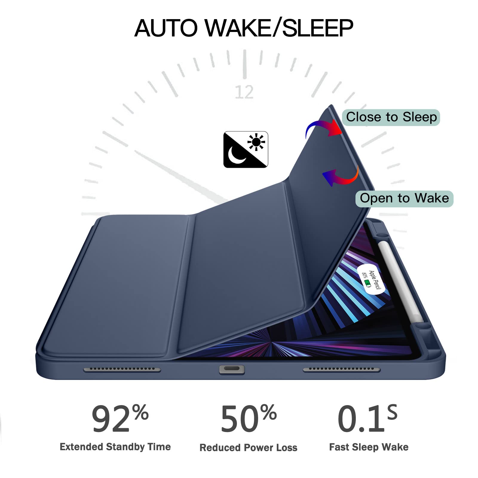 "Auto Wake/Sleep: The iPad pro case 12.9 with Auto Wake/Sleep function. Instant On/Off Cover wakes the device up and puts it to sleep to save battery life.