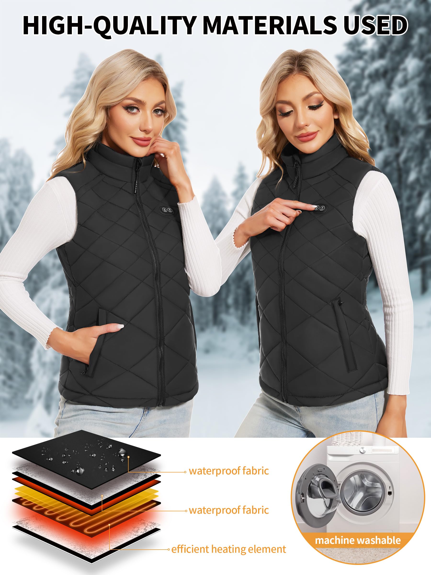 Vofuoti heated vest for women with 10000mah 5v battery, lightweight quilted heated vest for women, electric heated vest, for skiing, motorcycle riding, outdoor activities.