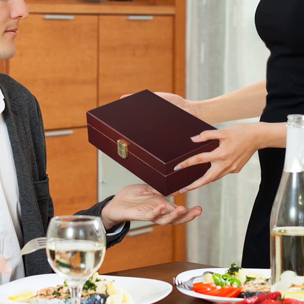 ["The reddish-brown Volenx cigar case comes with a polymer crystal humidifier and an external hygrometer with brass, and is lined with cedar wood.","This mini cigar box holds about 4-10 cigars, depending on the size of your cigars.","External dimensions are approximately 9 inches long * 5.6 inches wide * 2.7 inches high, and it weighs about 1.87 lbs. The right size and light weight make it a very practical portable humidor.","Beautiful reddish-brown finish that makes the cigar case look very natural and original. Goes well with your furniture and is very decorative.","Note: The hygrometer and humidifier in this cigar humidor are hung on the box with magnets. In case of damage, please contact us immediately by email." ]
