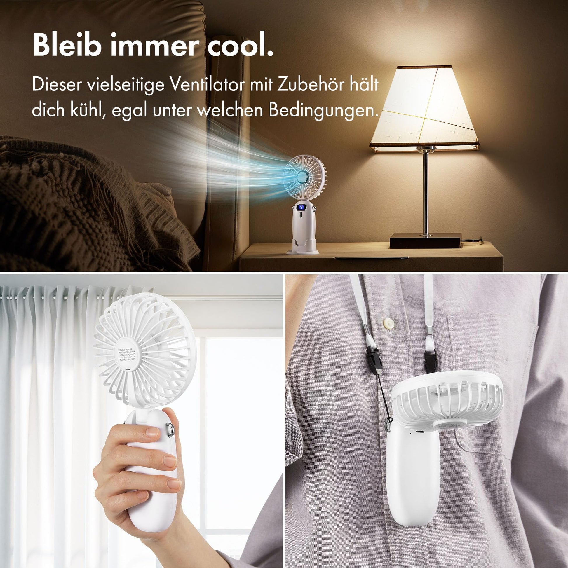 "MINI USB BATTERY FAN WITH MAXIMUM VERSATILITY: Stay cool on the go with the VonHaus handheld fan. Feel the breeze on the go thanks to the lanyard and the 90° foldable head; for freshness whenever and however you want.
