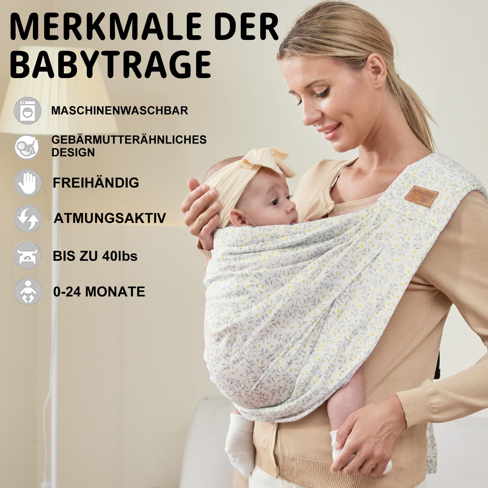 ["Weight and Size: The baby carrier from vrbabies is made of 100% high quality cotton. It is soft, skin-friendly, and breathable, suitable for all seasons. The baby wrap carrier is soft and stretchy. Perfect for moisture wicking, absorbs sweat for added comfort. Newborn to toddler baby carrier can bring you and your baby the most comfortable experience at any moment.",