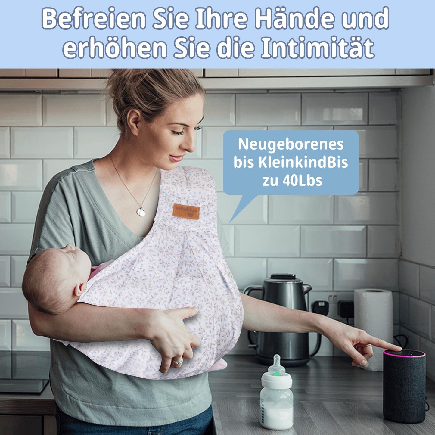 ["Weight and Size: The baby carrier from vrbabies is made of 100% high-quality cotton. It is soft, skin-friendly, and breathable, suitable for all seasons. The baby wrap carrier is soft and stretchy. Perfect for moisture wicking, absorbs sweat for extra comfort. Newborn to toddler baby carrier can bring you and your baby the most comfortable experience at any moment.", "Ergonomics Design: The baby carrier has a 5mm thick cotton pad on the buttocks that can prevent scratching the baby's legs and neck, and also prevent it from slipping, improving safety. Individual thickened 1-inch (2.5cm) shoulder pads evenly distribute the weight of the baby, shoulder and back force evenly, mothers wearing baby carriers for a long time to carry the baby will not feel fatigue or pain.", "Adjustable Design: The two adjustable lengths of the baby carrier for newborns are 20.8-22.4 inches (53-57cm). The newborn baby carrier allows you to not worry about postpartum body changes and other issues, and can adjust the appropriate size anytime according to you and your baby's body shape, suitable for the whole family to use.", "Multiple Options: Four different carrier positions. It can meet the needs of the baby in different stages and protect the healthy growth of the baby. Our lightweight baby carrier with a shoulder strap allows you to carry your baby in the same position as in the womb, giving your baby a familiar sense of security and making it easy for you to enjoy eye contact to build a bond with your new bundle of joy.", "Lighten Your Burden: With baby wraps, you can pamper your child on a busy day while keeping your hands free for other things. Baby wrap carrier is lightweight and easy to fold and carry. This baby carrier can also be used as a nursing cover. Mothers can breastfeed their baby anytime, anywhere. Baby carrier can effectively relieve elbow pain and protect elbows."]
