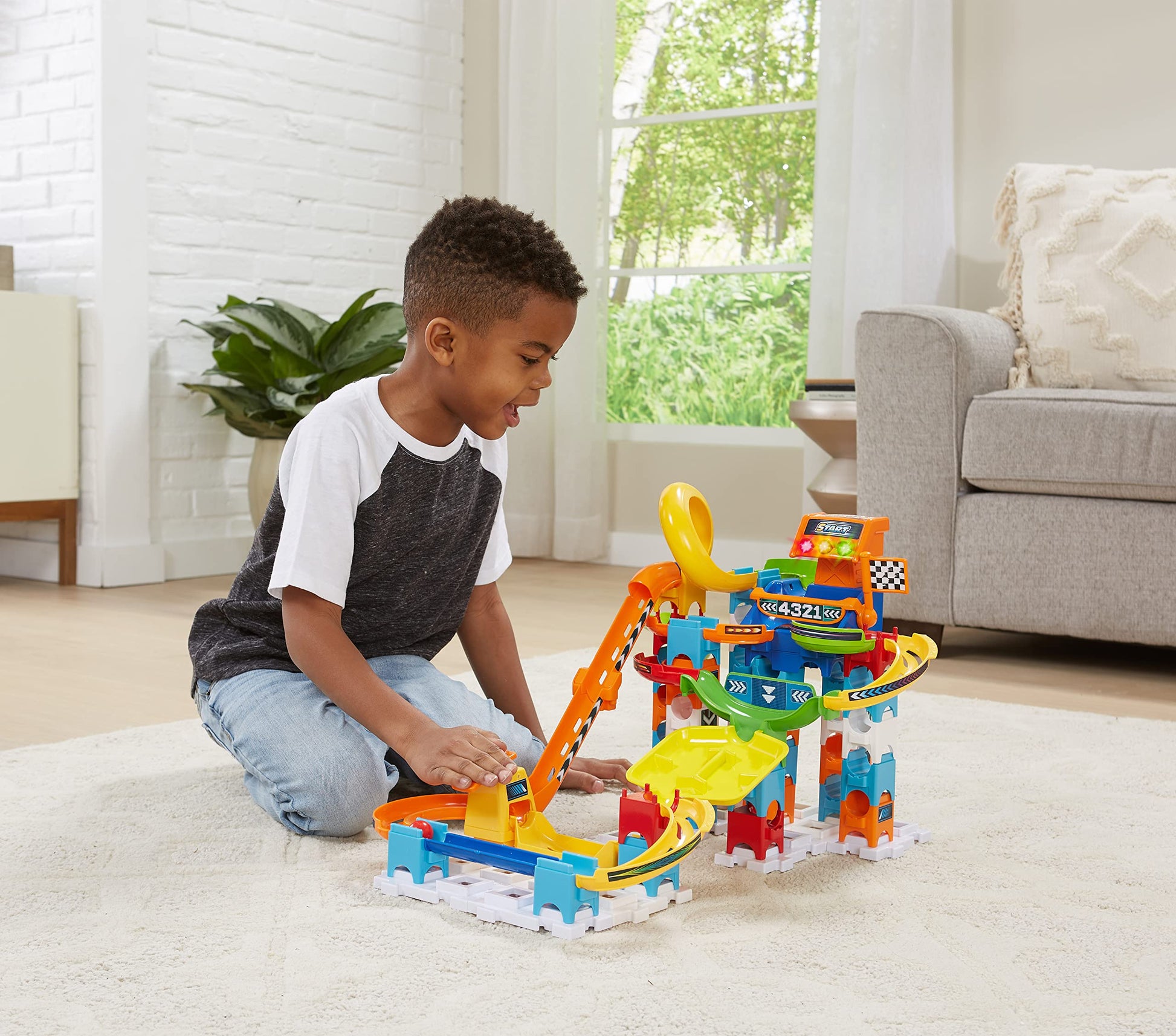 VTech Marble Rush - Racing Set M200 E - Interactive marble run set with lights and sounds, exciting track elements, building options, and path configurations - For kids aged 4-12.