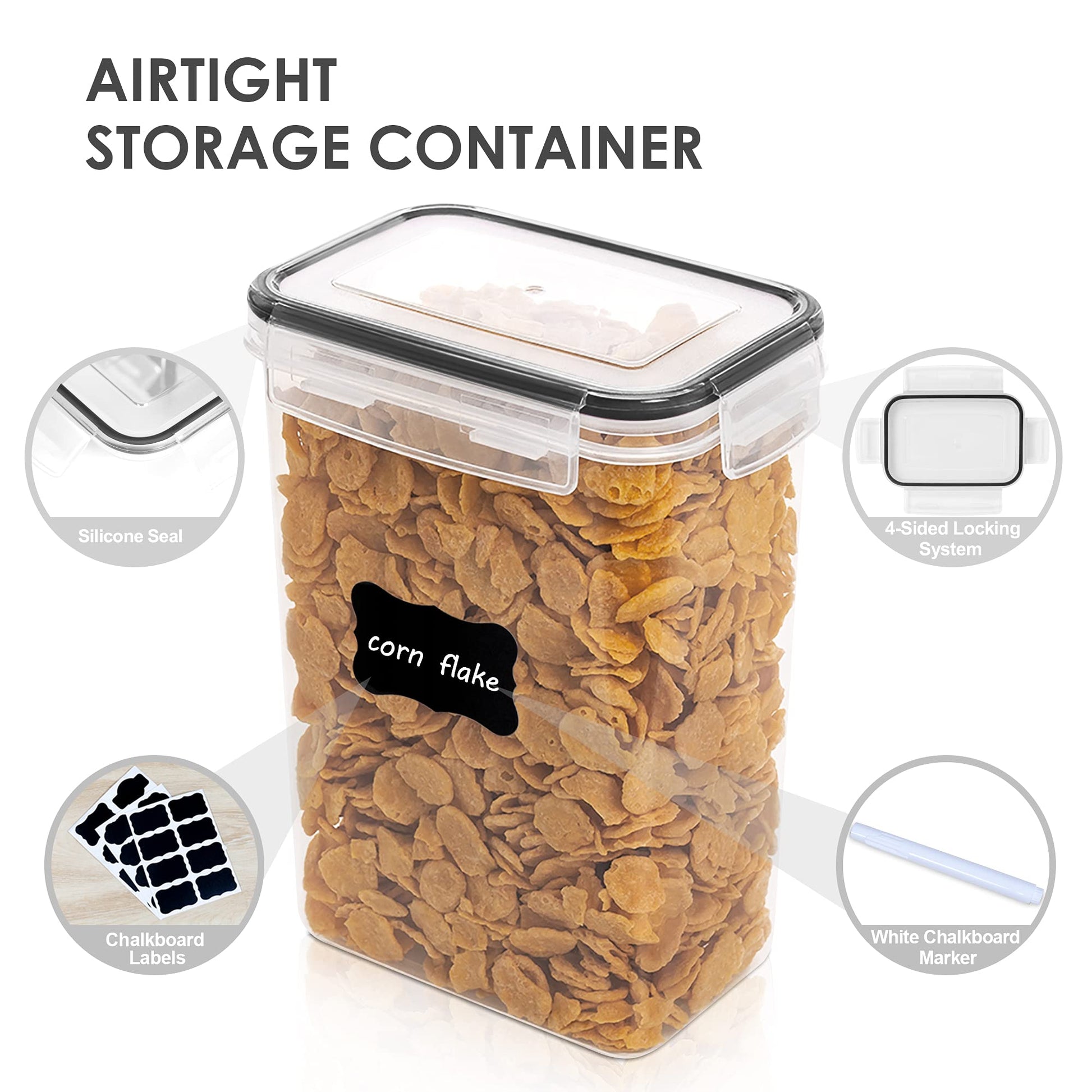 "Perfect for pantry organization ---- This set includes 9 small containers (2 liters) that are perfect for storing a small box of cereal. You can also use them to store baking supplies, Cheerios, oats, pasta, cereal, rice, flour, sugar, coffee, tea, snacks, and nuts.