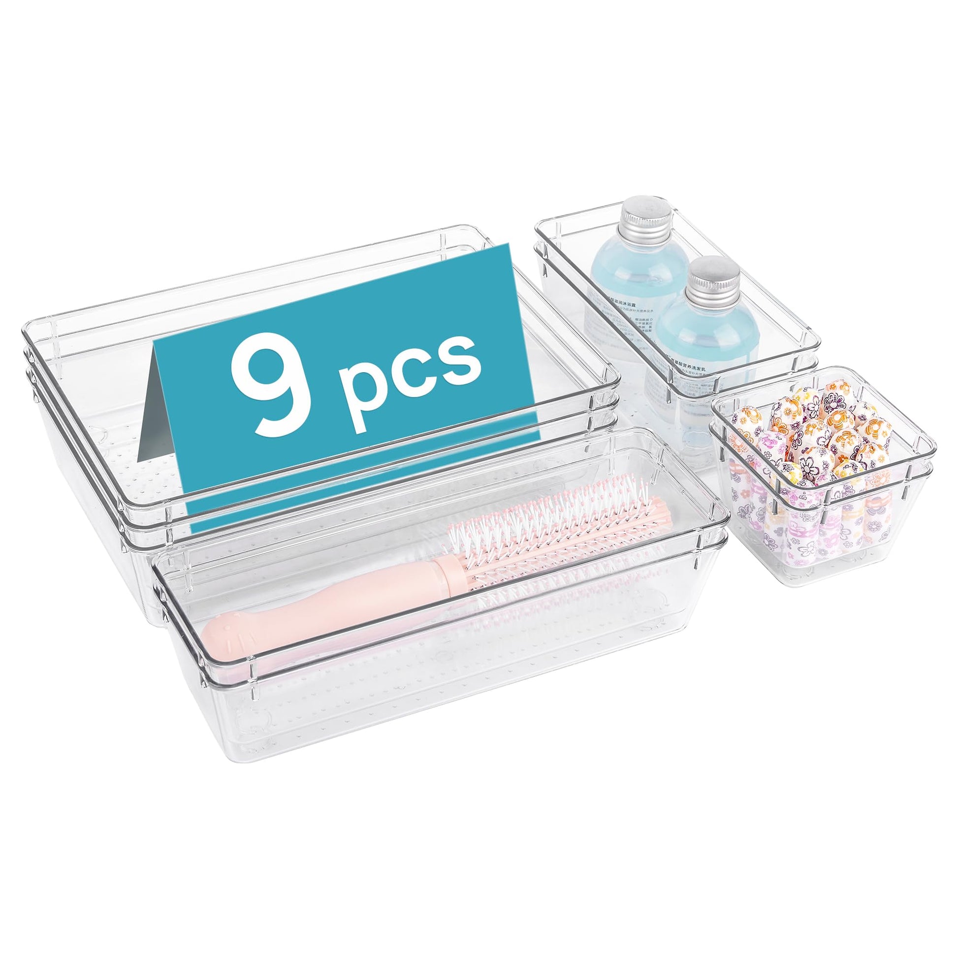 Vtopmart 9 Pieces Drawer Organizer with 4 Sizes, Vanity Organizer, Drawer Organizer, Organizer Trays for Kitchen, Jewelry, Bedroom, Office