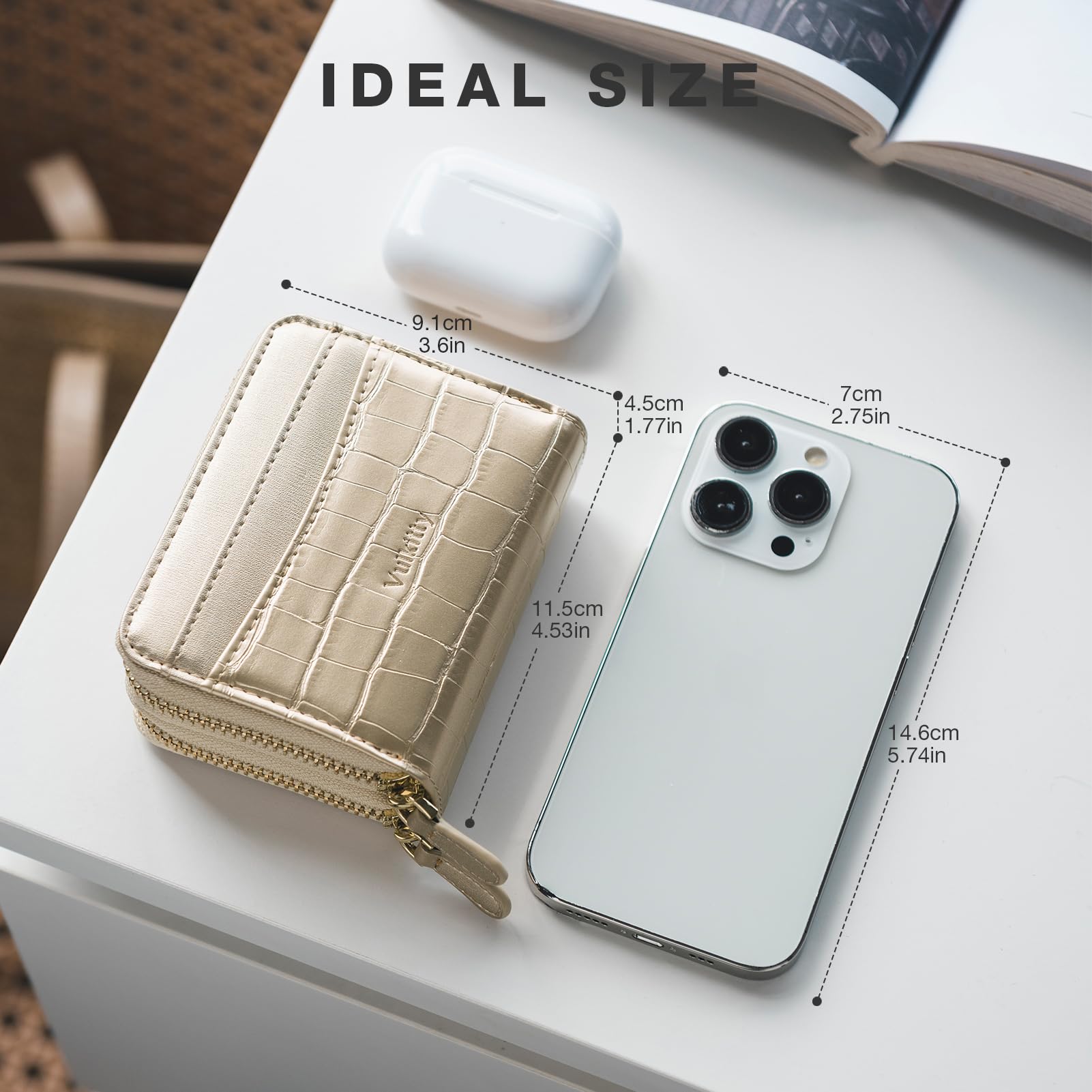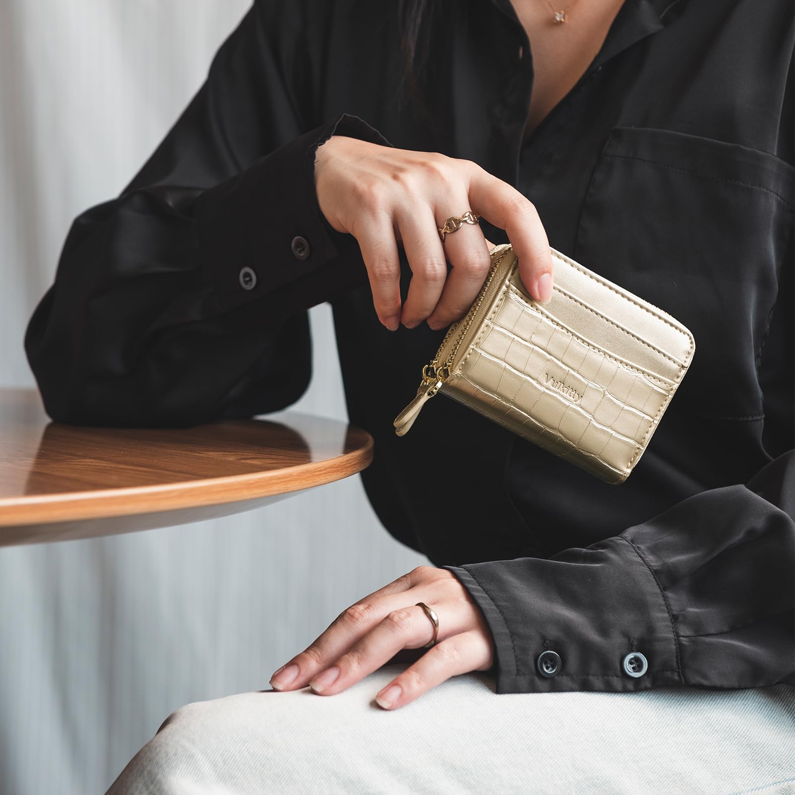 "SPACIOUS CAPACITY for the essentials - Equipped with 11 accordion-style card slots and 1 ID window on the back, the women's accordion card holder can hold at least 14 cards, over 10 cash and coins, covering your daily needs.