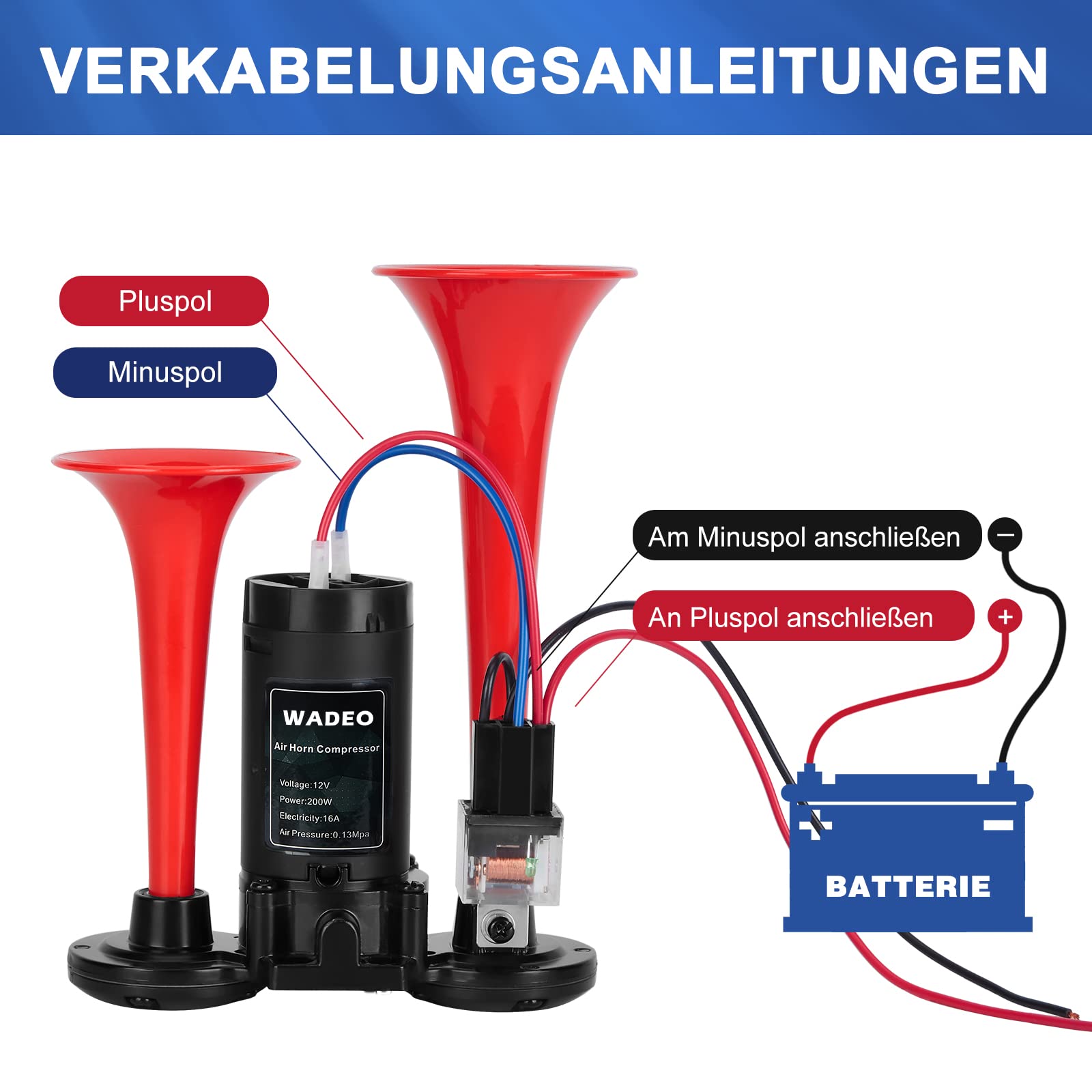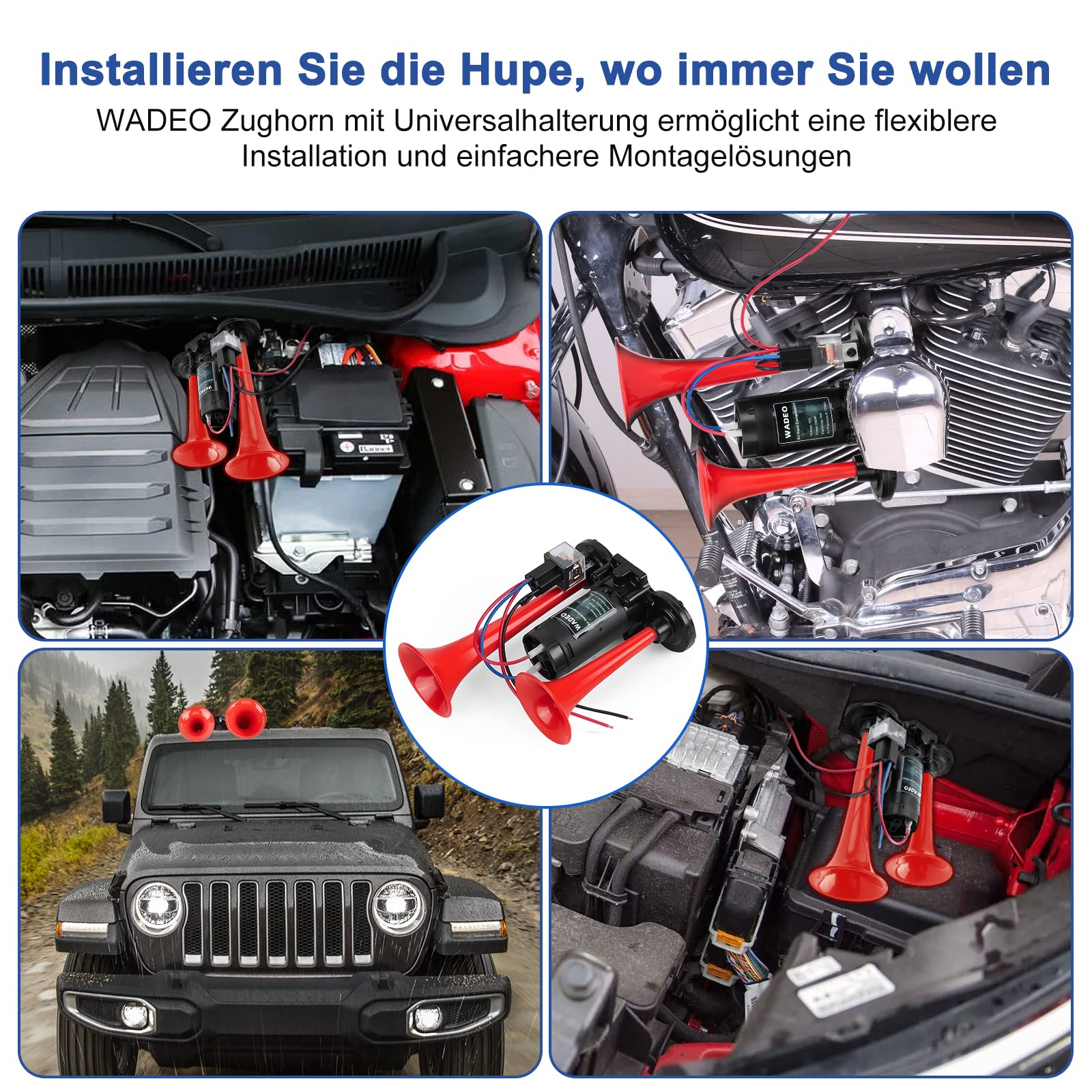 WADEO 12V Truck Horn 118db, Super Loud Dual Horn Car Horn with Compressor, Air Horn Air Horn Loud Horn Kit for all 12V vehicles, cars, trucks, trains, boats, cars, vans (Red)