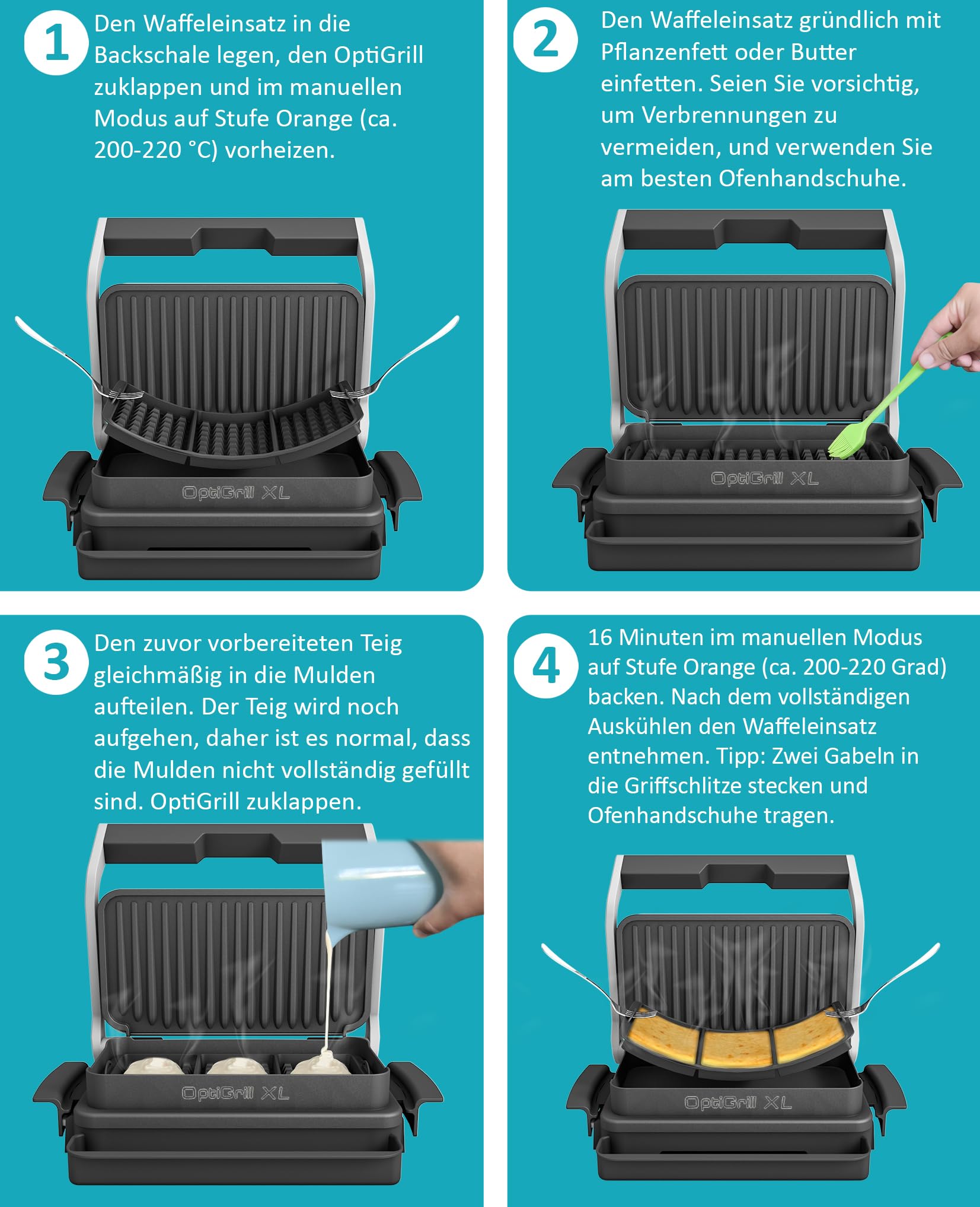 Waffle insert compatible with Tefal OptiGrill XL, 4in1 XL, 2in1 XL, Elite XL, Plus + XL, Elite Plus XL, Silicone baking tray insert, Belgian waffles, waffle, accessory