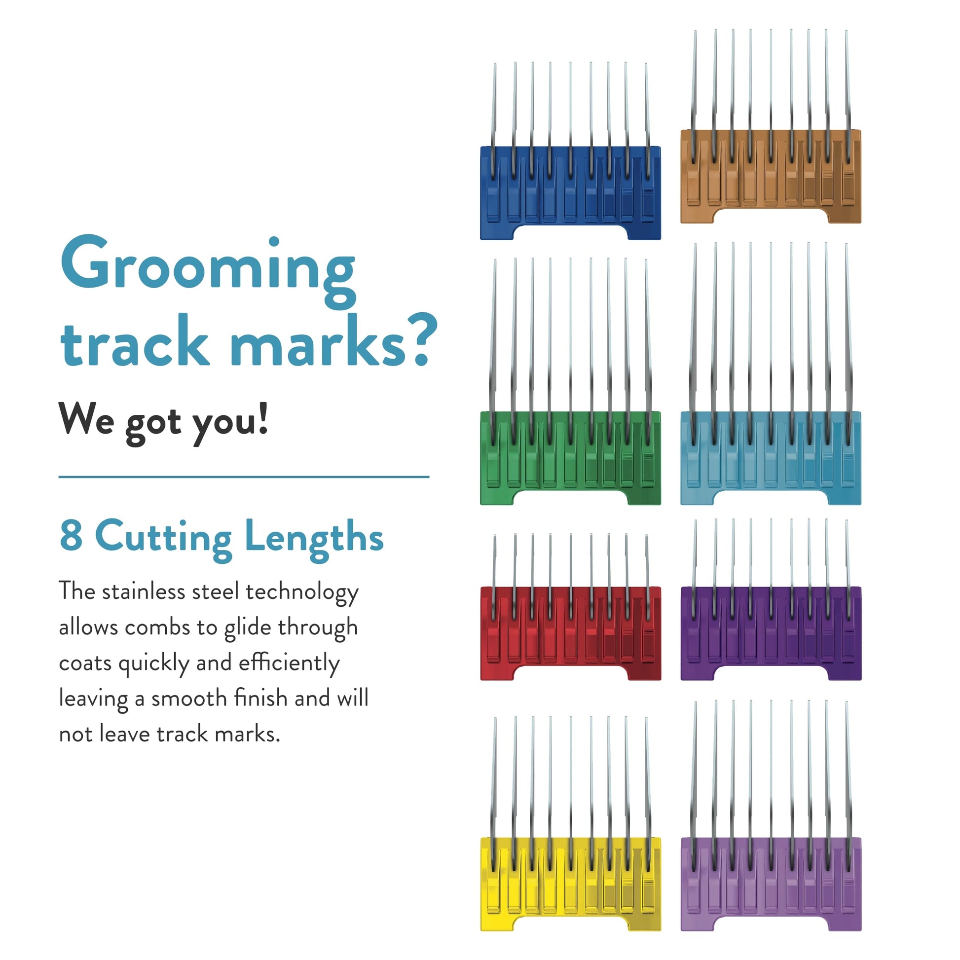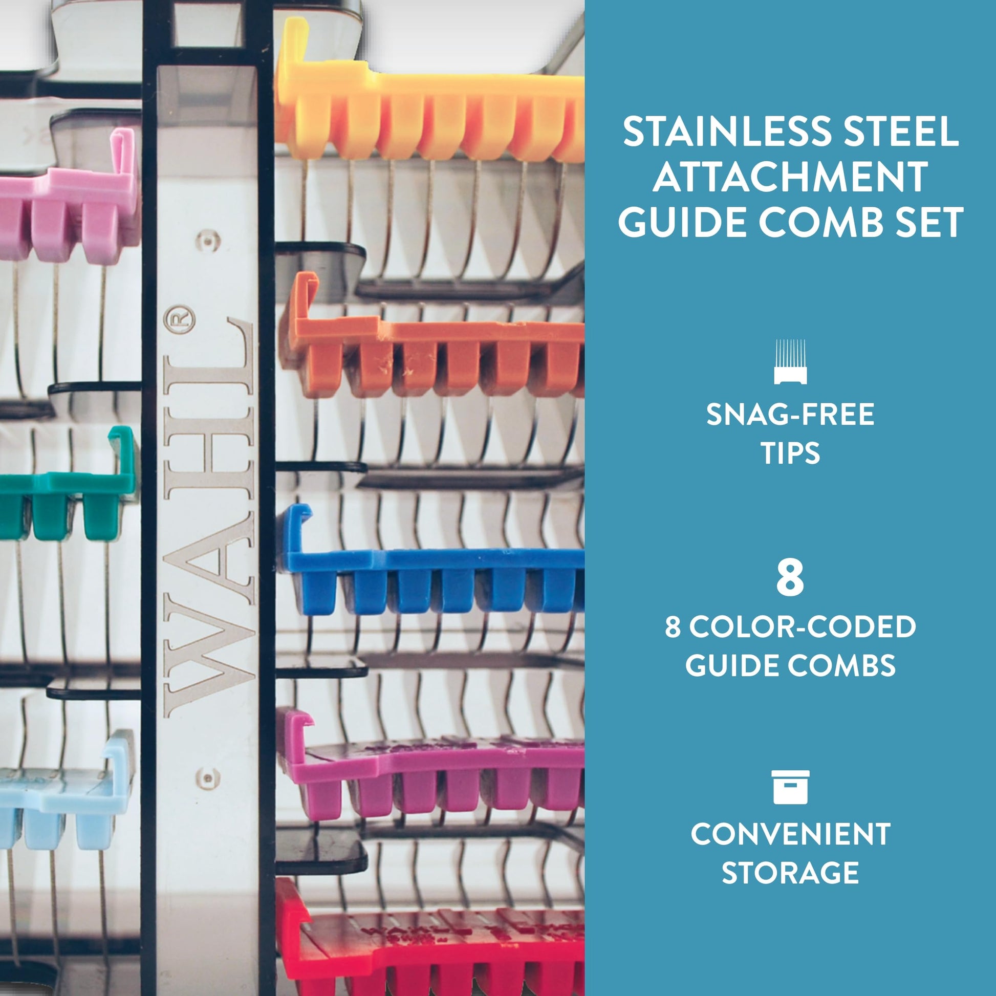 "For the Wahl Arco, Belisima, Bravura, and Chromstyle models. Only suitable for the mentioned models. Made of stainless steel. 8 different sizes; includes storage box. Sizes ranging from 0.5-1 inch."