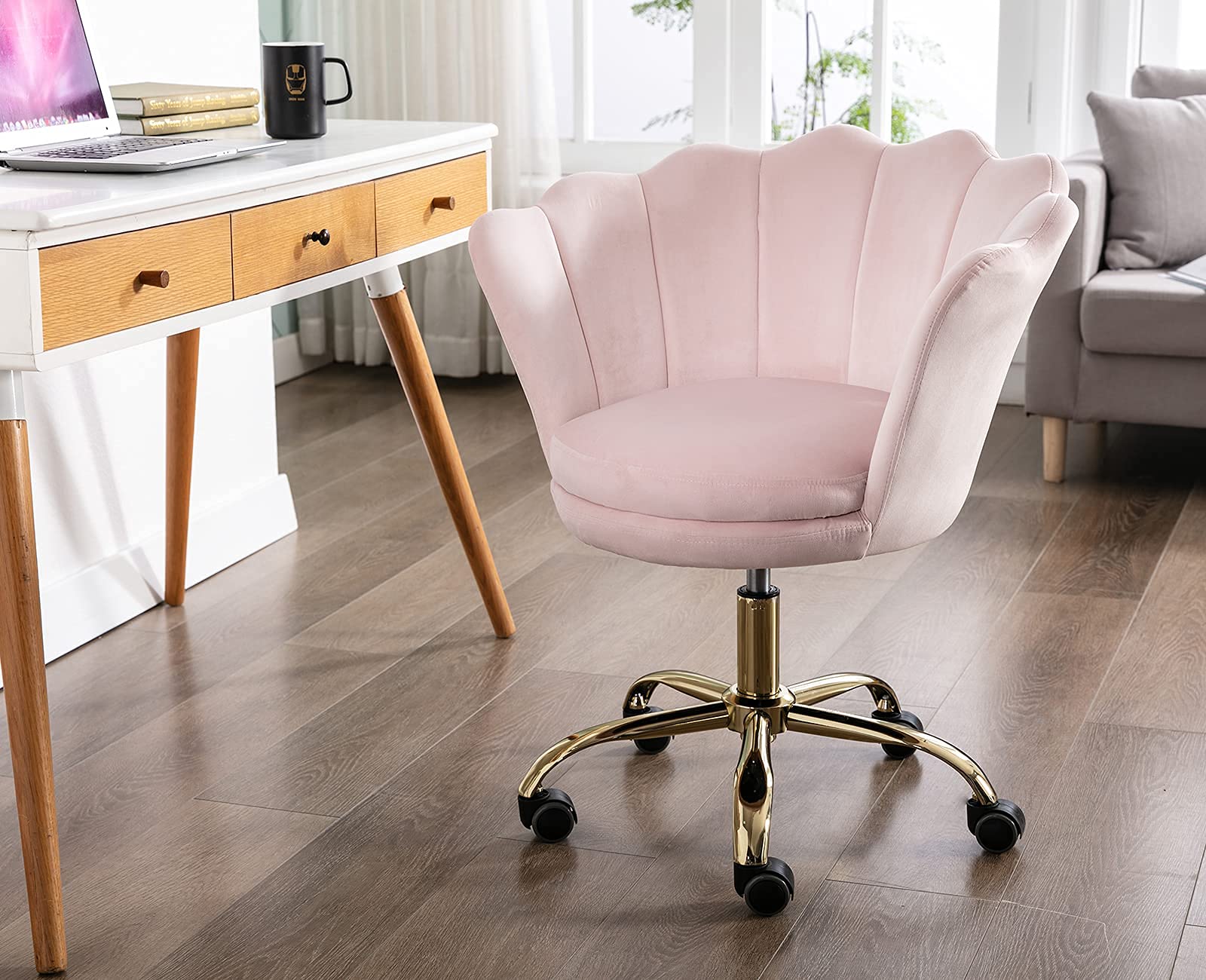 "High quality: The soft velvet fabric with high-density foam provides comfort for many hours; gold-plated metal base with casters offers 360-degree freedom of movement."
