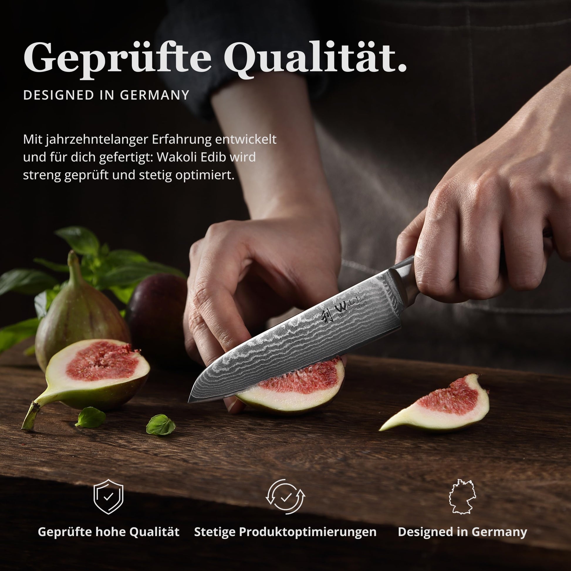 ["COMPACT SANTOKU KNIFE - 9.25 INCHES TOTAL LENGTH, 4.7 INCH BLADE The small Santoku knife with 9.25 inches total length and 4.7 inch blade is ideal as a sharp kitchen knife for vegetables, meat, sushi, or steaks - perfect for professional chefs and ambitious home cooks.","VG10 CORE & 67 LAYERS DAMASCUS STEEL - LONG-LASTING SHARPNESS The sharpened Damascus blade (60±2 HRC) with VG10 steel core provides extreme sharpness, high edge retention, and a distinctive Damascus pattern - for professional chefs and home cooks.","ERGONOMIC PAKKAWOOD HANDLE - GRIPPY & BALANCED Exquisite Pakkawood handle with ergonomic shape for a secure grip and optimal balance - even during long cutting tasks with the chef's knife or Santoku Damascus knife.","GIFT IDEA FOR COOKS - WITH BOX & OPTIONAL ENGRAVING High-quality kitchen knife in an elegant gift box - ideal as a gift for dad, cooking gift, or Valentine's Day gift for him. Optionally available with personalized engraving.","QUALITY FROM GERMANY - WITH SERVICE & SHARPENING SERVICE Each Damascus knife is carefully inspected. Our sharpening service in Buxtehude keeps your knife sharp permanently. Personal support for questions about your kitchen knife included."]