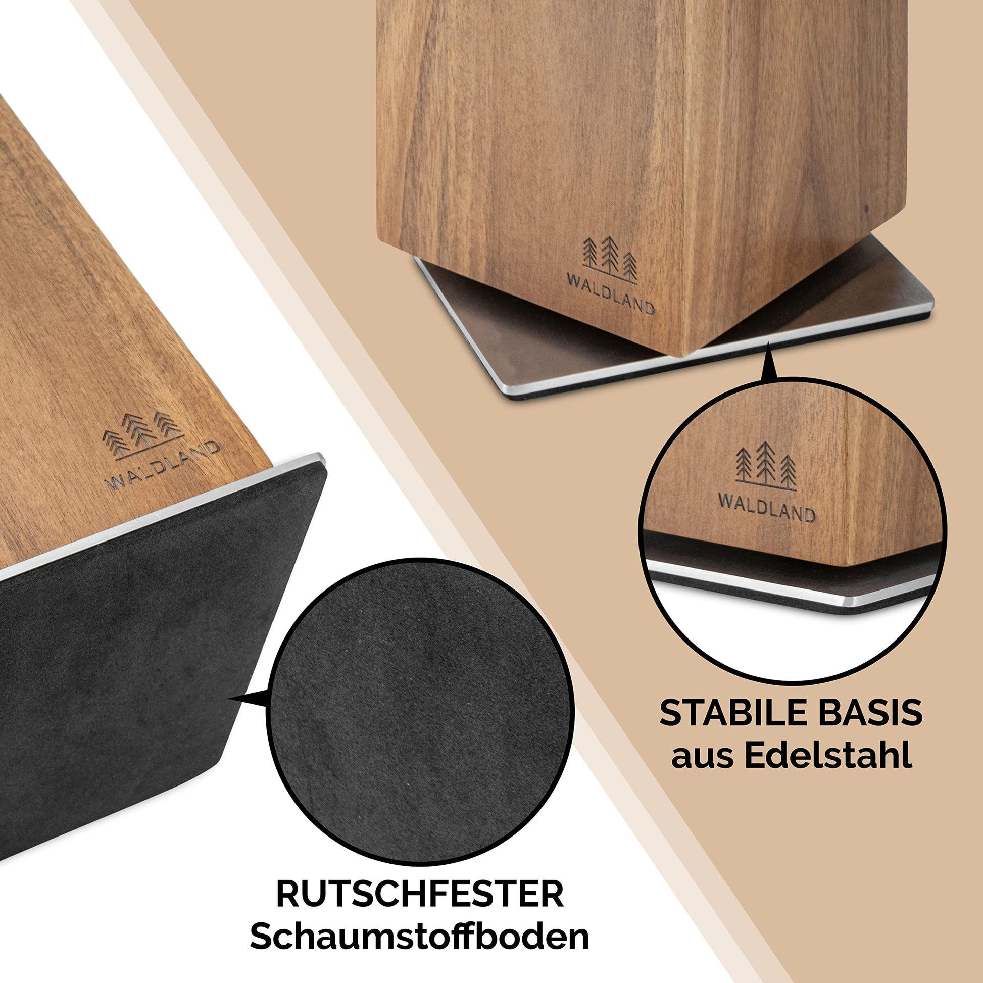 WALDLAND Premium knife block without knives I Magnetic and 360° rotatable knife block made of elegant and sturdy acacia wood I Magnetic knife holder for knives I Wooden block kitchen organizer