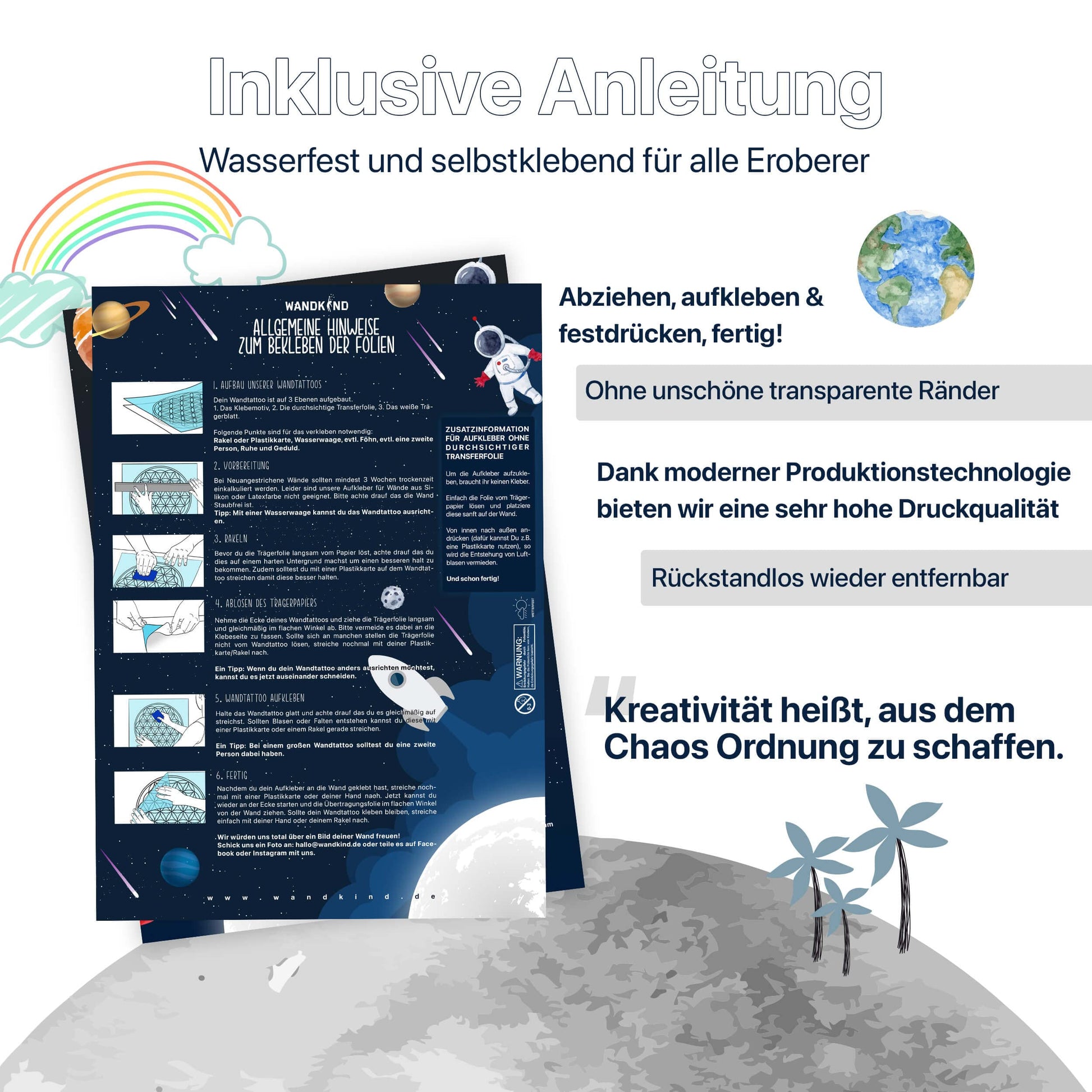 "π MADE IN GERMANY: We design and create your wall sticker in Germany. The printing and cutting are done by WANDKIND itself. Our contour-cut children's stickers are chlorine and softener-free as well as odorless. Therefore, they are ideal for classrooms and kindergartens.