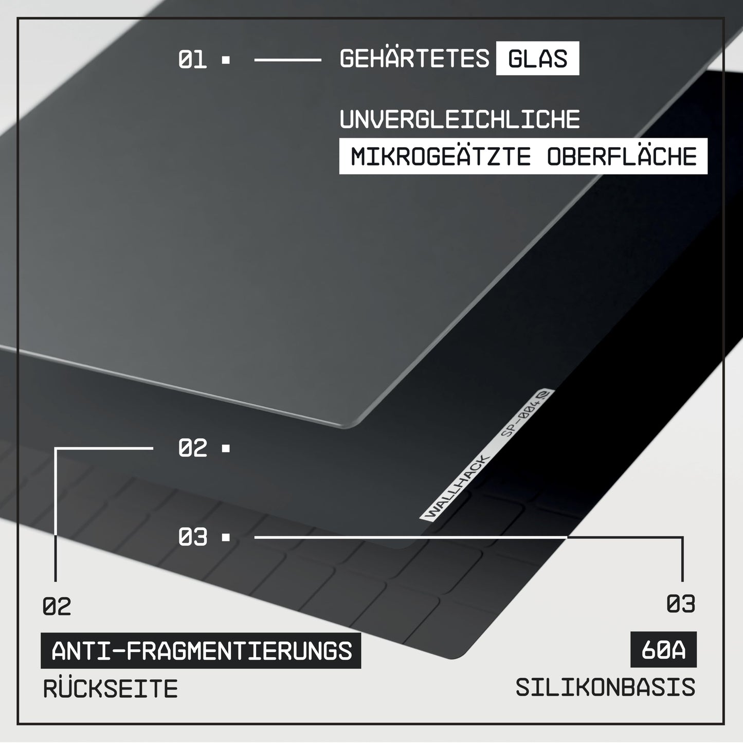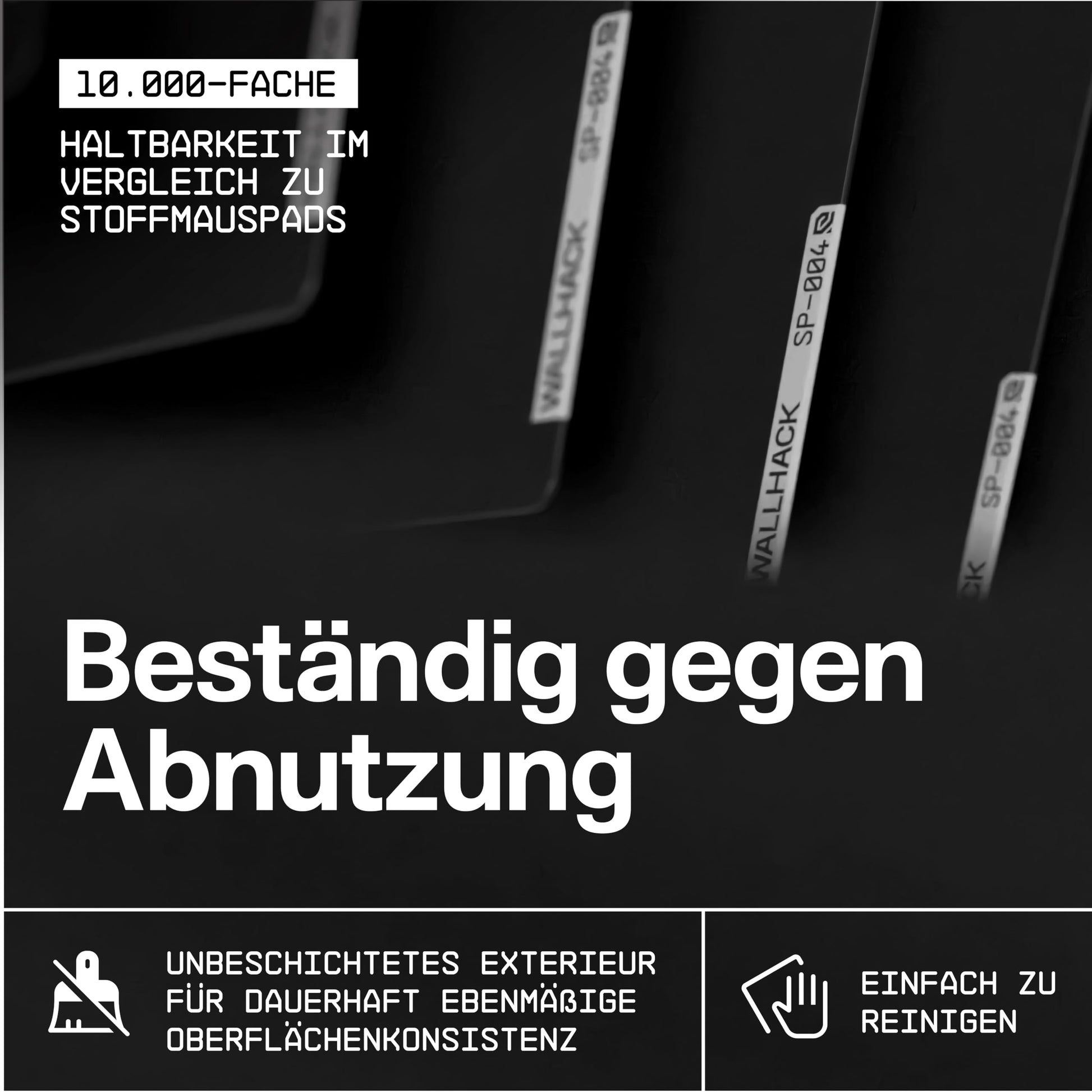 Wallhack SP-004 Glass Gaming Mousepad Professional Esport with special surface for maximum speed and control, large glass pad complete with silicone base - Black, XL 49 cm x 43 cm
