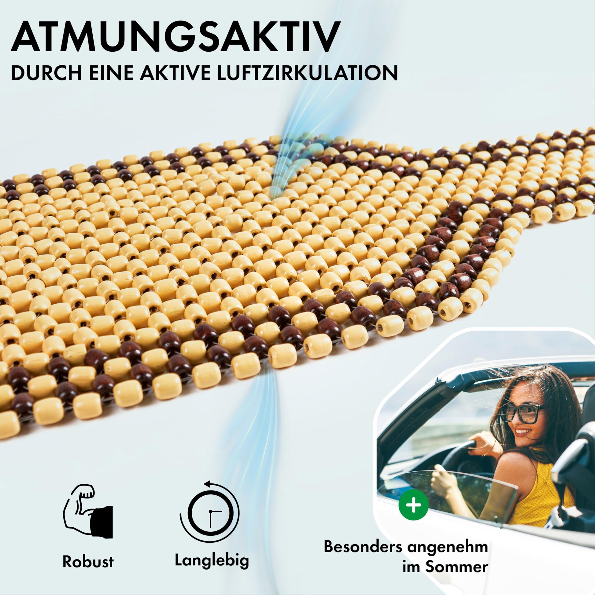 "Timeless Design: The high-quality seat mat scores with a classic yet timeless wooden bead design.",