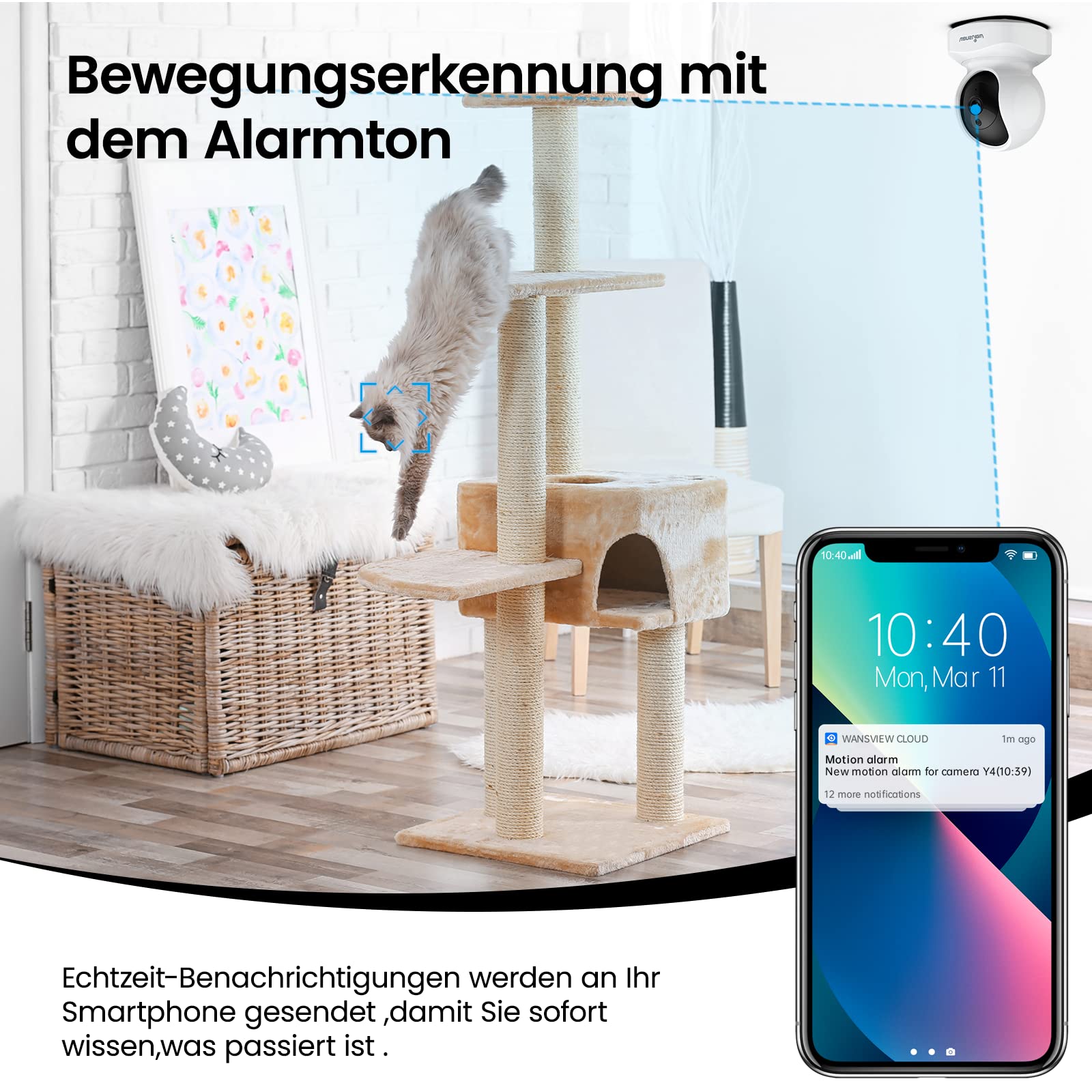 wansview 2K Indoor Surveillance Camera - WiFi IP Camera, 2.4GHz WLAN Camera for Indoor use, Indoor WiFi Camera with 2-way audio, Night Vision for Indoor Camera with motion detection, Q5 White