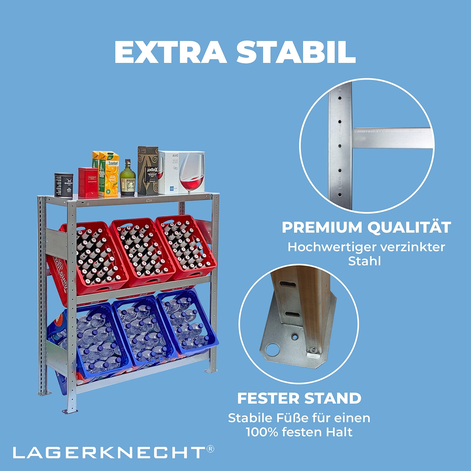 ["✔ Made in Germany - Certified Quality: Our beverage crate shelf is manufactured in Germany and meets the highest quality standards. Certified by the German Institute for Consumer Protection - for maximum safety and durable comfort!","✔ Stable & Robust: The sturdy construction with a shelf material thickness of 2 mm can hold up to 150 kg per shelf - perfect for full beverage crates. Ideal for long-term storage without bending or wobbling!","✔ Simple & Convenient Assembly: Thanks to the intelligent plug-in system, the shelf can be assembled in no time - without complicated screws. Stability meets user-friendliness!","✔ Versatile & Practical: Use the shelf for water, beer, or soft drink crates or even as a laundry basket shelf - for perfect organization in the garage, basement, or utility room!","✔ Customer Service, Made in Germany: Your concerns are our concerns! Our German support team helps you quickly and reliably - for a worry-free order and 100% satisfaction!"]