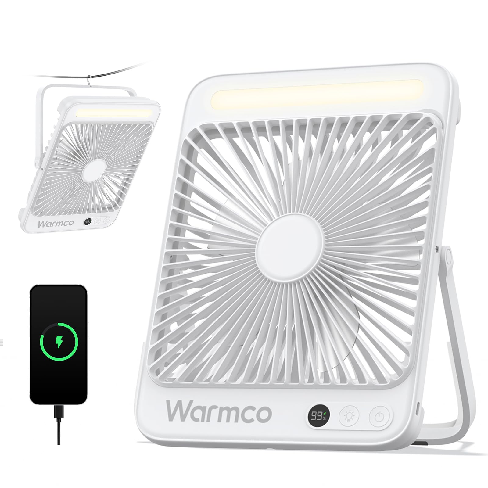 Warmco 20000mAh Portable Camping Fan 27cm with LED light, Ultra-Quiet, Thin, Digital Display, Up to 48H Runtime for Outdoor, Travel, Office, Bedroom