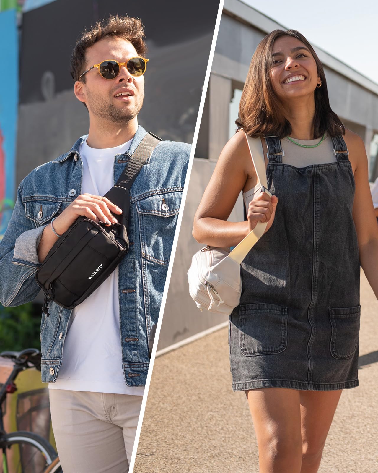 WATERFLY Waist Bag for Men and Women: Sporty Stylish Fanny Pack Small Festival Bumbag MTB Hipbag Walking Belly Bag Unisex Hip Bag for Sports Dog Training