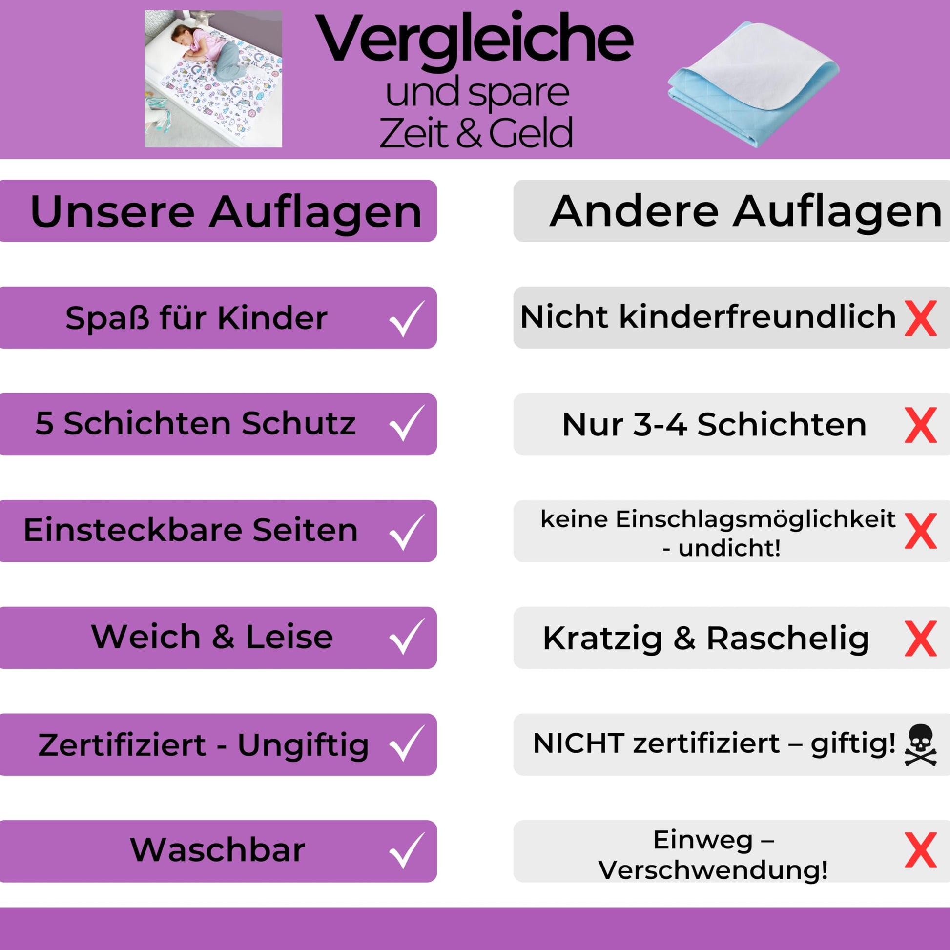 ["π¦ MAXIMUM ABSORPTION CAPACITY - The Hygge Sheets bed pads for children provide absolute waterproof protection with 5 layers, keeping the mattress 100% dry at night and protected from accidents.","π¦ UNIVERSAL SIZE: The bed pad is 86cm x 91cm (plus flaps) and fits all single, toddler, and kids beds. Not suitable for children under 2 years old.","π¦ SUPER SOFT QUILTED MATERIAL - The premium top of the pad is made of the softest material for maximum comfort of your child. Each Hygge Sheet Molton mattress protector is certified according to OEKO-TEX 100 STANDARD.","π¦ 100% LEAK PROOF - Many traditional bed pads for bedwetting leak because they do not have flaps to keep the mattress protector in place. Our lateral wings to tuck in cover both sides of the mattress, ensuring that the mattress pad stays in place and side leaking is impossible.","π¦ NIGHTTIME DRYING AID - Super easy to remove and change, even if you're still half asleep. Simply toss in the washing machine in the morning and avoid the stress and hassle of having to clean or change the entire mattress at night!"]