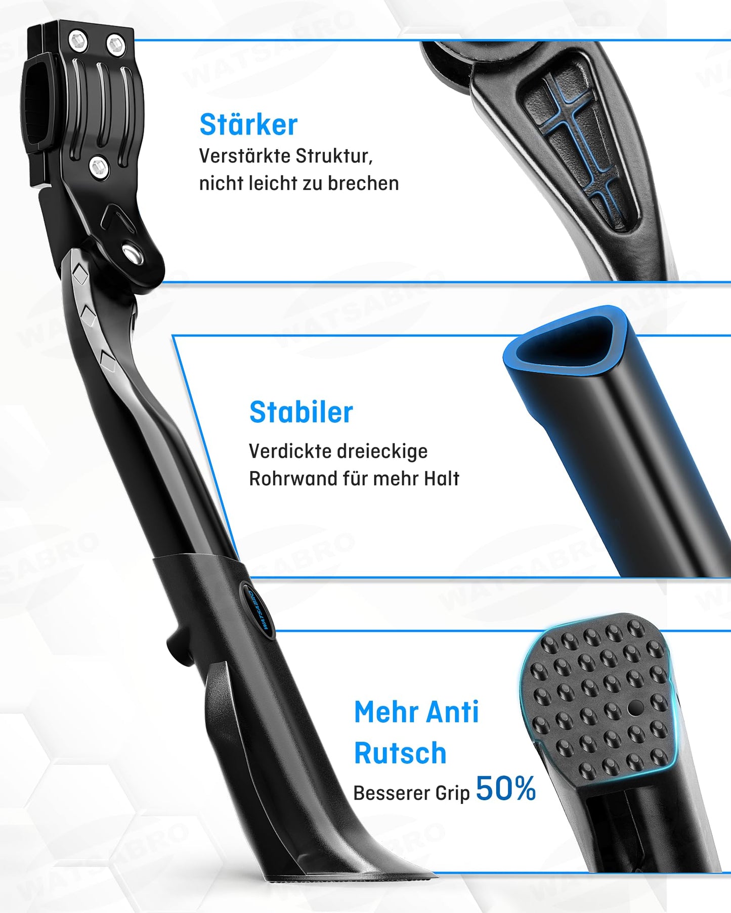 WATSABRO Bike Stand 24-29 Inch Upgrade - Adjustable bike stand, rear stand with more stable & non-slip structure for e-bikes, MTBs, city bikes (45 kg)
