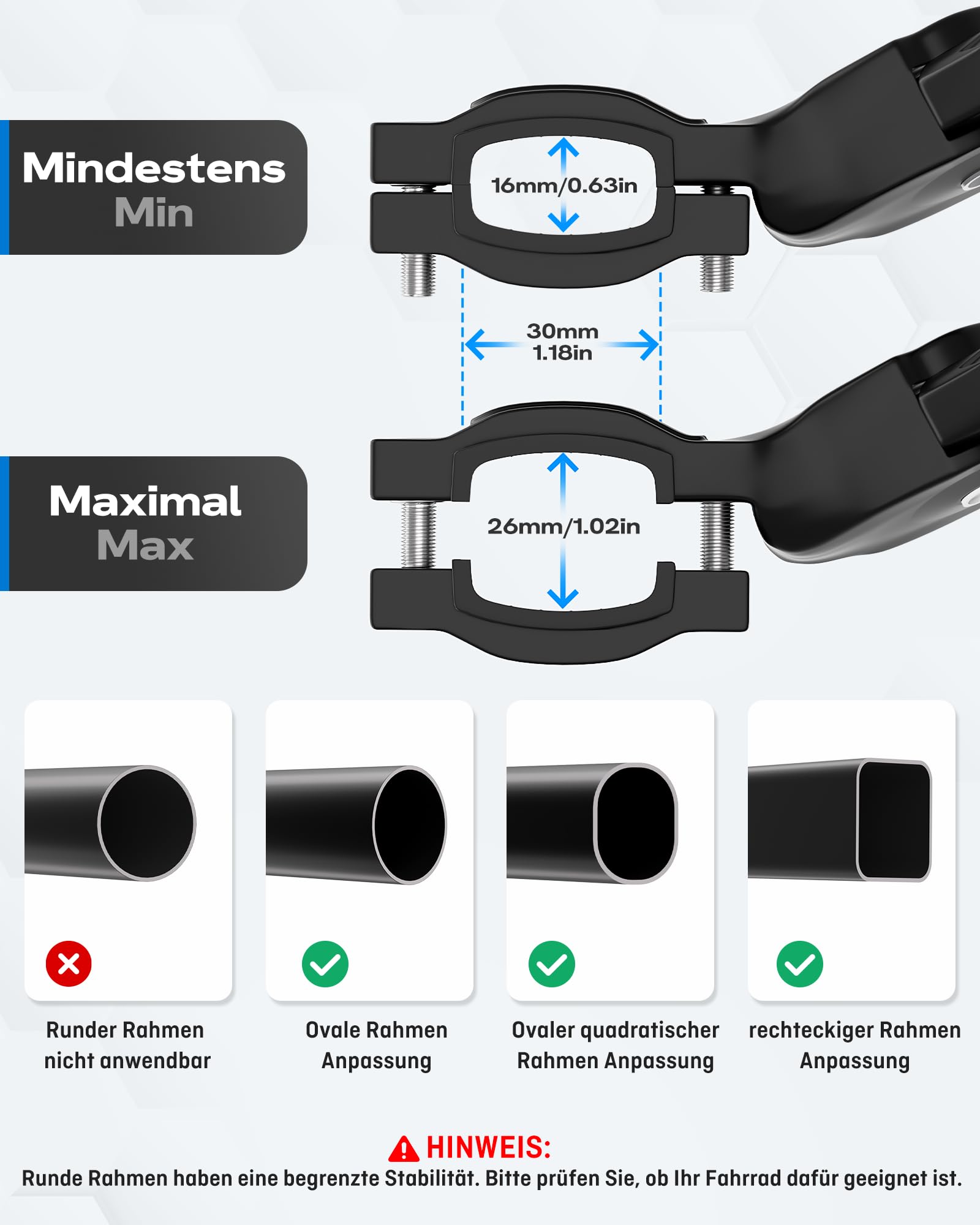"【Please measure before purchasing】To avoid not being able to use it after purchasing, please make sure that your bicycle frame height is greater than 27.5 cm before purchasing, this bracket is not suitable for round frames."]