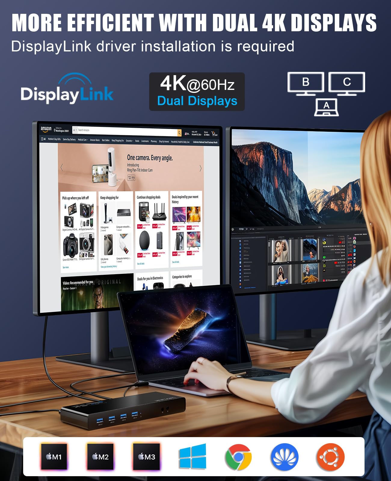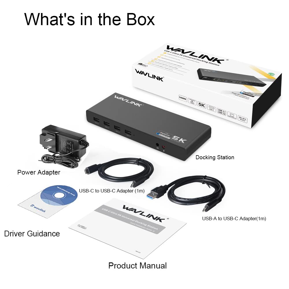 WAVLINK USB 3.0 Universal Laptop Docking Station, USB C to 5K/Dual 4K @ 60Hz video outputs Dual Monitor for Windows, (2 HDMI & 2 DP, Gigabit Ethernet, 6 USB 3.0)