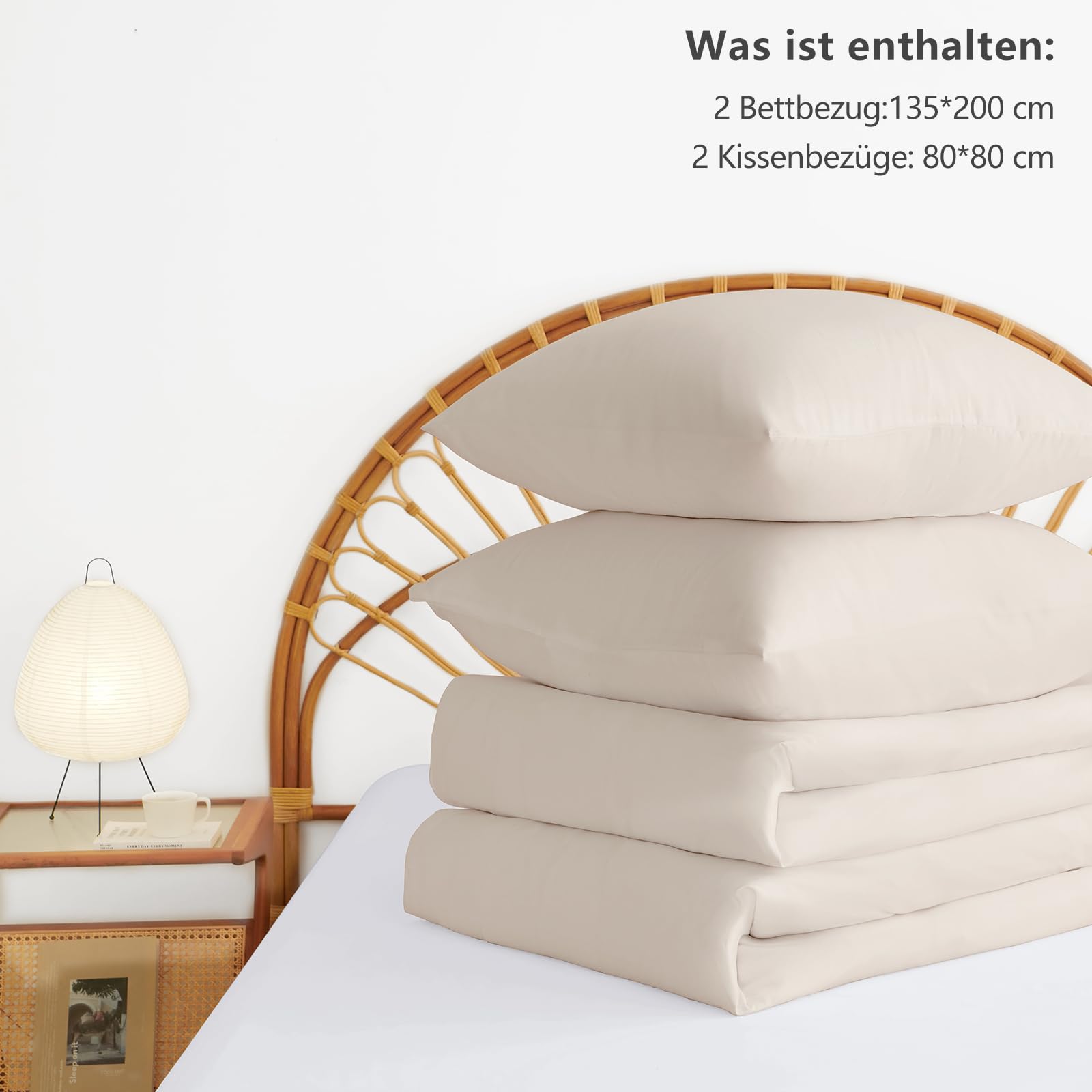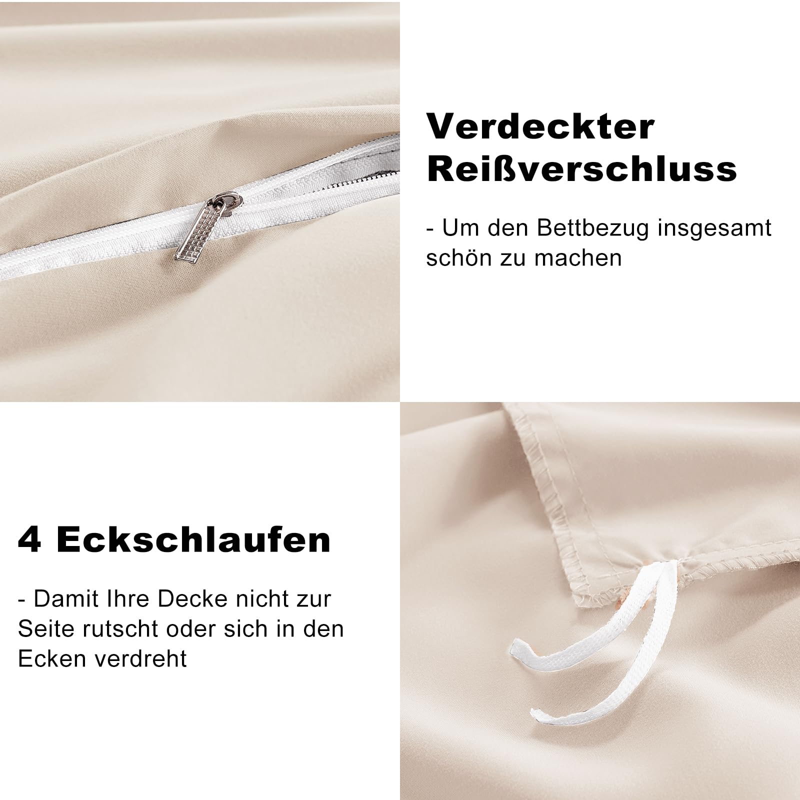 WAVVE Bedding 135x200 4-piece Beige - Duvet Covers 135 x 200 2-piece Set with Pillowcases 80x80 cm, Bedding Sets 135x200cm made of Microfiber with Zipper Soft