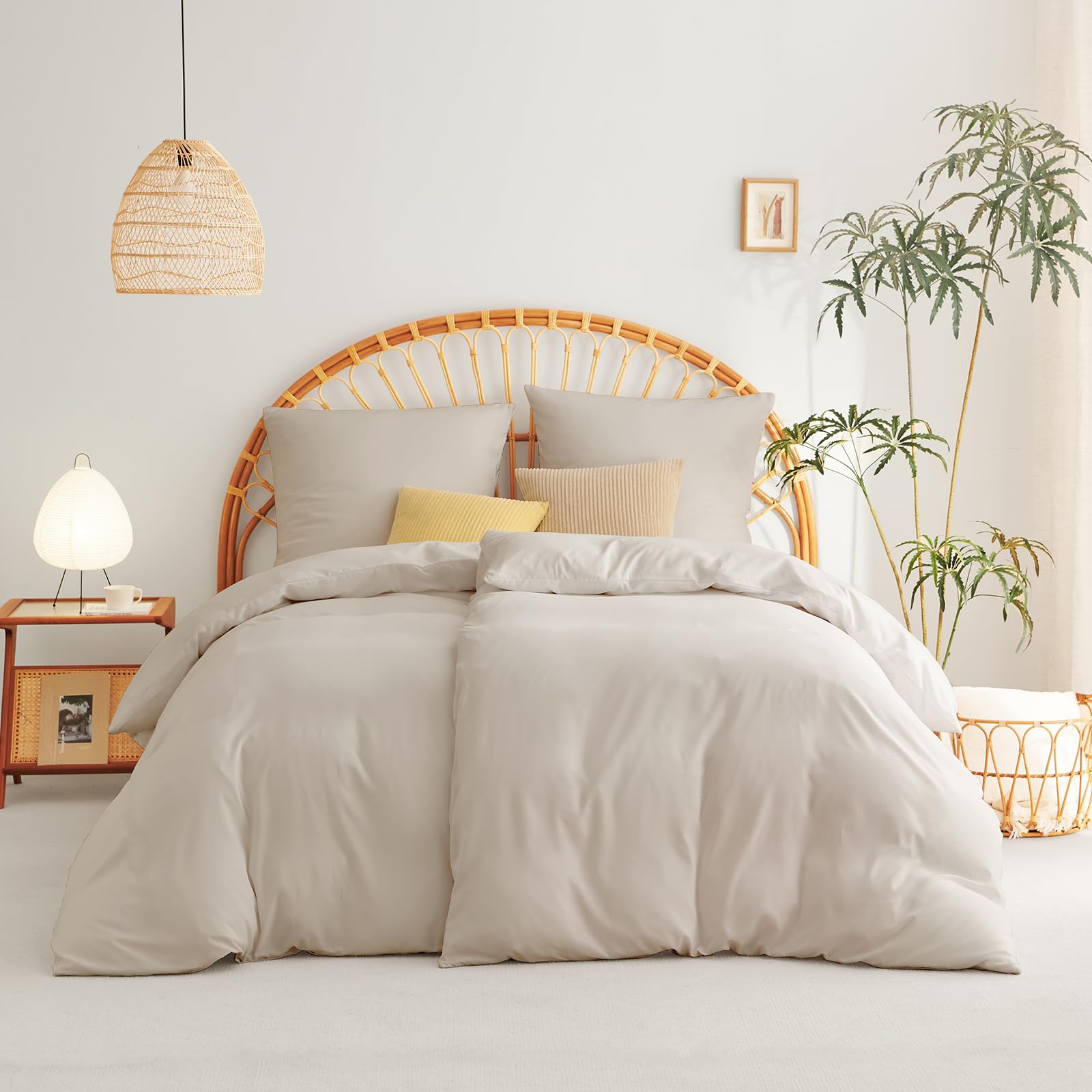 ["🔸Bedding Set - The simple solid colors of the duvet cover 53x79 inches 4-piece set (including: 2 duvet covers 53x79 inches + 2 pillowcases 31x31 inches) are made of microfiber. With a smooth surface and a fine touch, the bedding brings you a comfortable and peaceful sleep.","🔸Breathable - Due to its breathability and temperature regulation, the bedding set is suitable for both summer and winter nights, making it usable all year round. Additionally, the bedding maintains its shape well thanks to the fine fibers and has good durability.","🔸Modern Design - The solid color bedding set 53x79 inches fits perfectly with its simple design to almost any living style. We offer you a wide range of solid colors to give your bedroom a stylish and comfortable atmosphere.","🔸Exquisite Zippers and Straps - The duvet cover is equipped with high-quality zippers for easy on and off. In addition, practical straps are sewn into the four corners to keep your duvet in place and prevent slipping. The pillowcase has an envelope opening and no zipper design.","🔸Care Instructions - With these great bedding sets, your duvet and pillow are protected from dirt. Furthermore, the bedding is easy to care for and can be washed in the washing machine at 104°F and dried at low temperature in the dryer."]