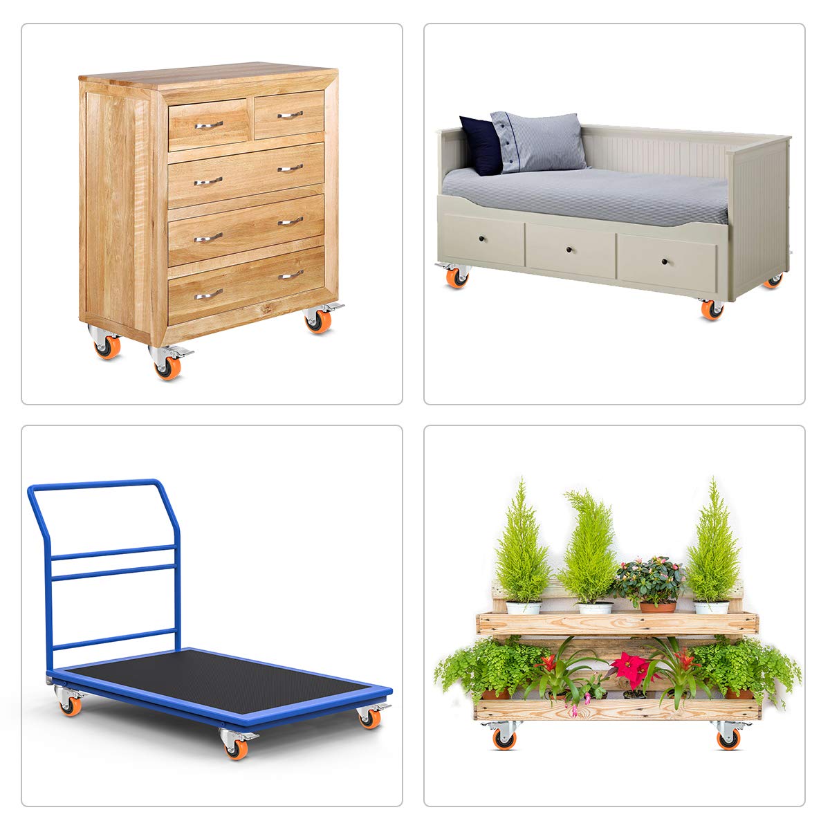 Easy rolling: Made from non-marking polyurethane, these heavy-duty casters roll smoothly and quietly. Ideal for all scenarios, including hardwood floors, carpeted floors, and more!