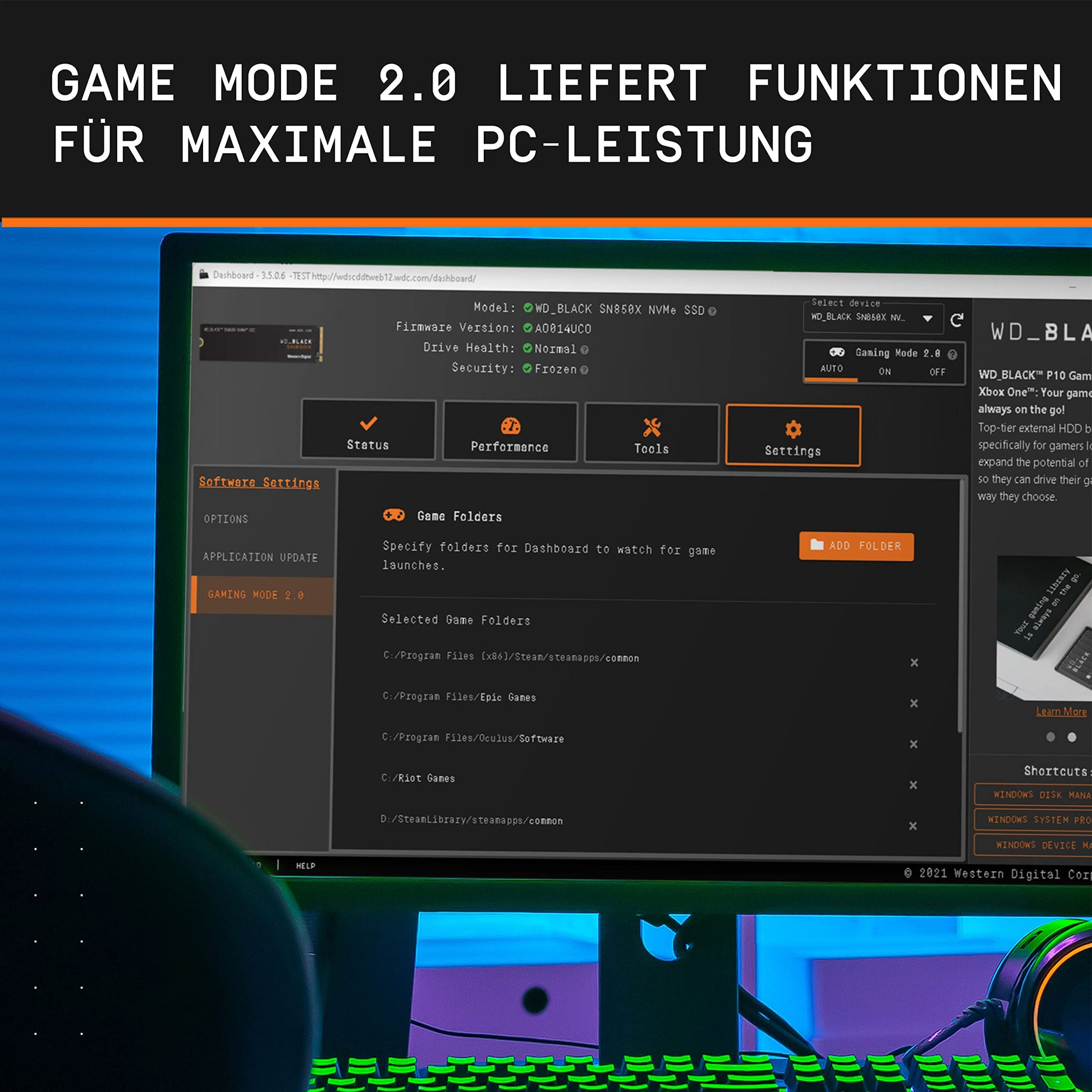 WD_BLACK SN850X NVMe SSD 2TB internal SSD (Gaming storage, PCIe Gen4 technology, Read 7,300 MB/s, Write 6,600 MB/s) Black