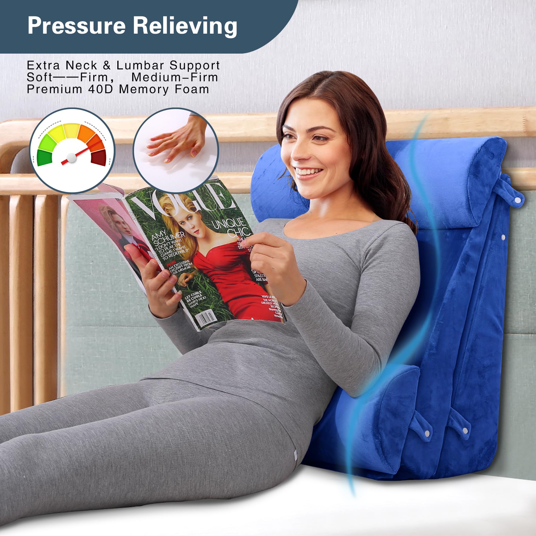 ["Adjustable as needed: Includes 2 wedge pillows and 2 half-cylinder pillows. You can stack them together to form a 12-inch high wedge pillow, or use them separately to support your legs, hips, waist, elbows, etc.","Multifunctional body support system: Aids in postoperative recovery, neck, back, and lumbar support, acid reflux, and GERD, lower limb edema support, fatigue relief, and reading","Full Memory Foam: All four pillows are filled with 40D memory foam, with moderate softness and firmness. Memory foam distributes pressure evenly on the body, eliminating pressure points","Machine washable cover: Soft velvet cover with non-slip bottom, U-shaped zipper","Note: The pillows are compressed in a vacuum-sealed bag. Upon receiving the package, please open the bag and allow the memory foam pillows to expand. Please be patient for 4 to 48 hours as they slowly regain their original shape"]