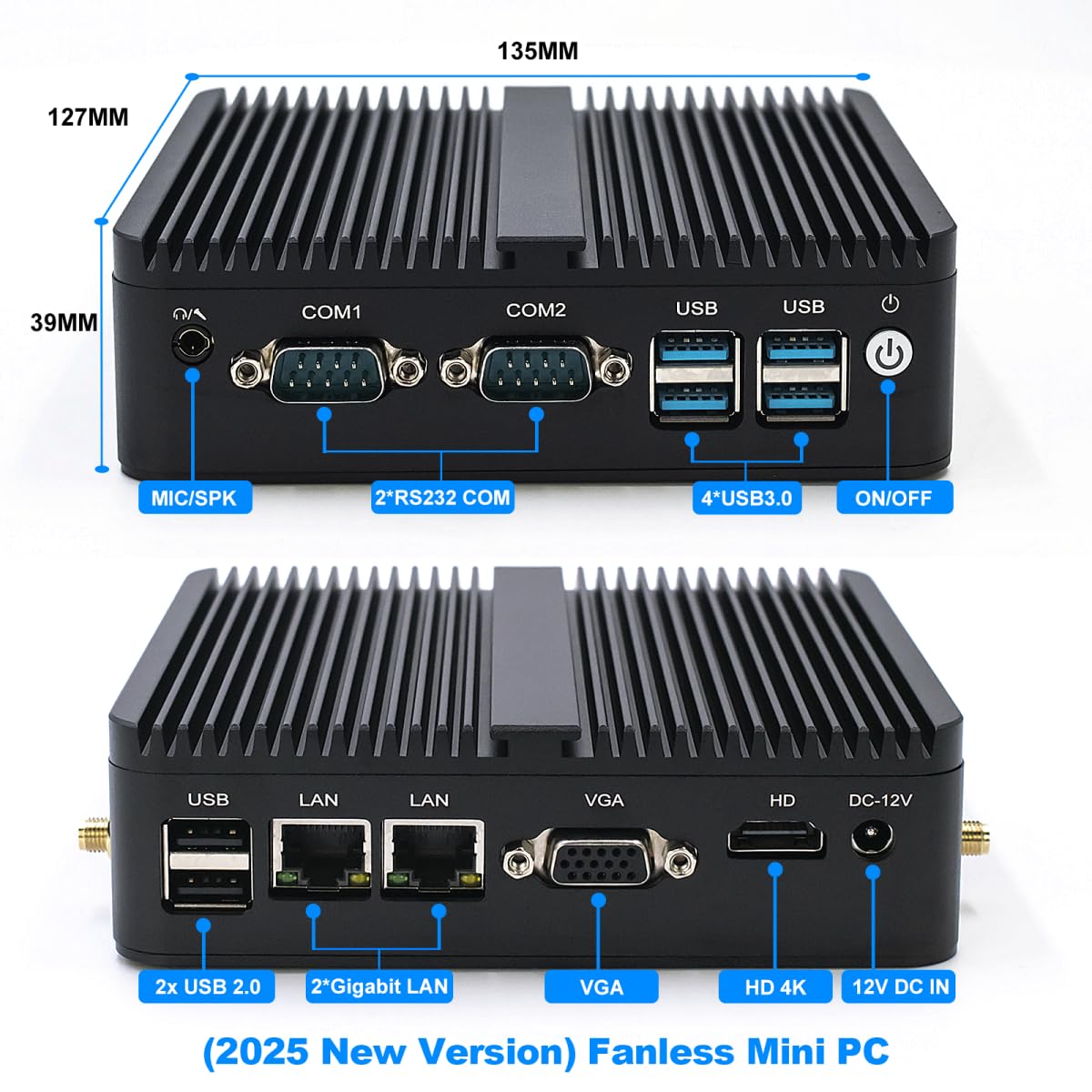WEIDIAN Industrial PC Fanless Mini PC Celeron J4125, 8GB RAM 128GB SSD, 2RS232 COM, 2Gigabit LAN, HD+VGA, Win11 Fanless Industrial Fanless Embedded Mini Computer Linux Auto Power On.