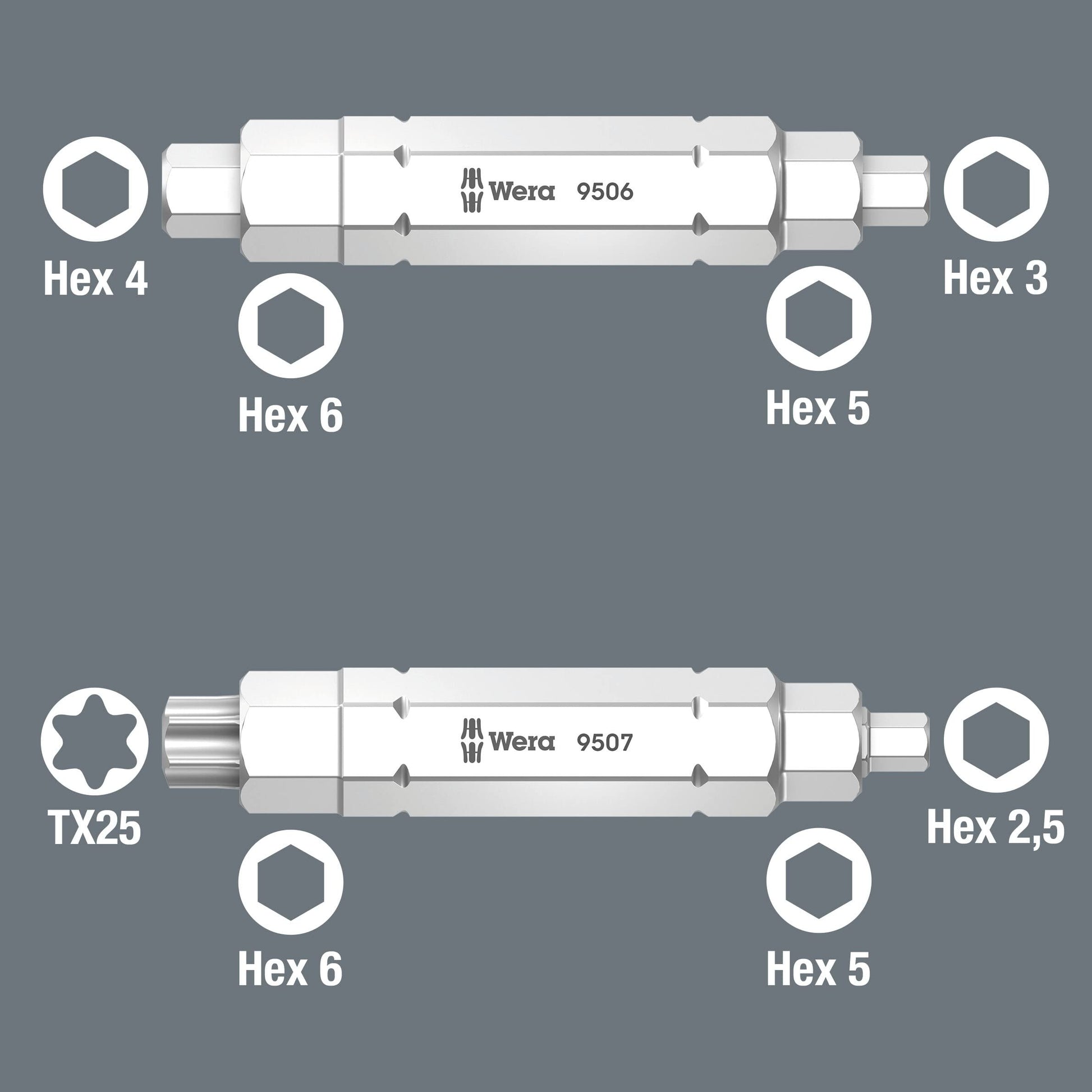 ["Innovative, extremely compact 4-way bit - only one bit for four different screw sizes","Very space-saving and therefore ideal for mobile use","Compact, secure and very easy holder in the Wera tire levers","The hexagon socket of the tire lever allows a torque of up to 10 Nm","Significant weight savings and better tool visibility when on tour"]