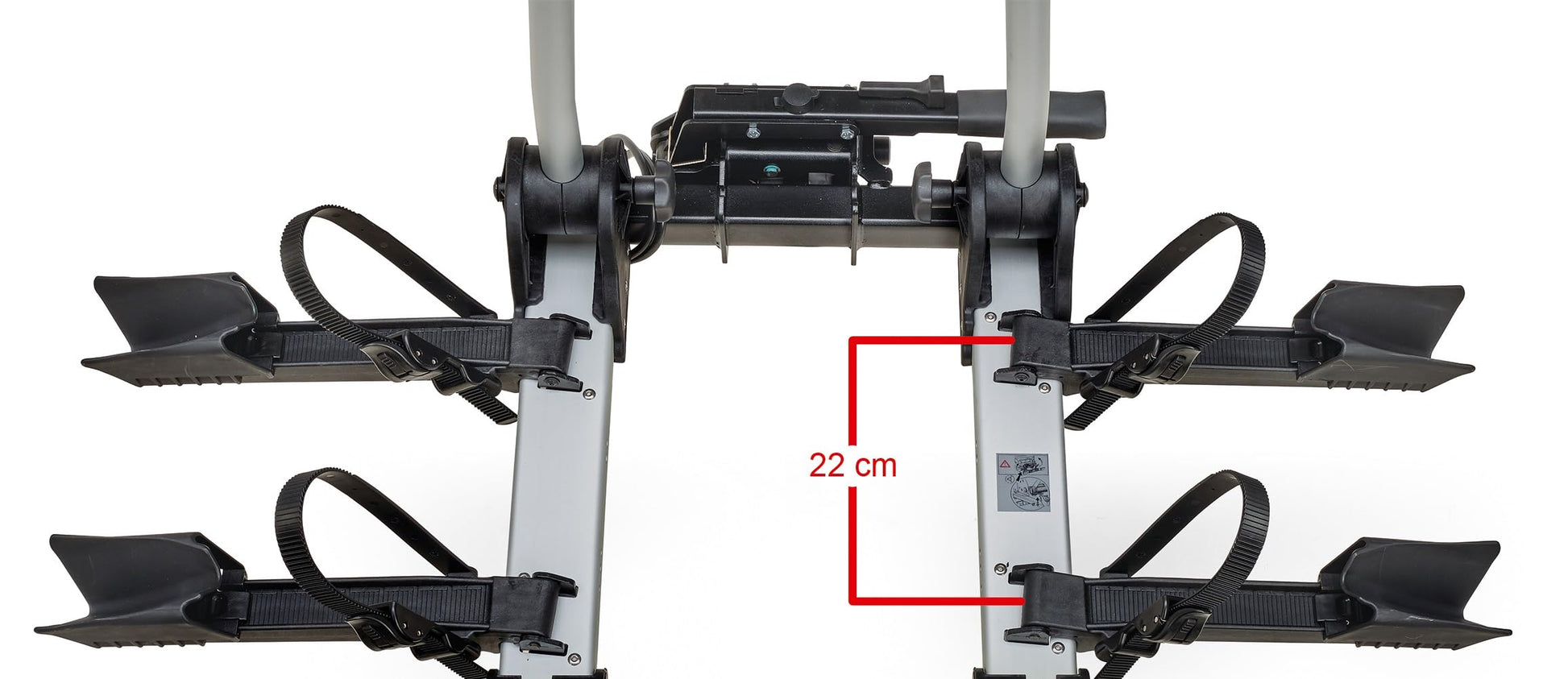 "SUITABLE FOR E-BIKES: Can transport heavy E-bikes thanks to a load capacity of 60 kg","TECHNICAL DATA: Individual locks provide theft protection for the carrier and bikes | For bikes with up to 70 mm tire width, 1,300 mm wheelbase, and 80 mm frame diameter | Distance between wheels: 220 mm | Modern LED hybrid lights","ACCESS TO THE TRUNK: The practical folding function allows easy access to the trunk even when loaded (except for VW T5/T6 and Mercedes Vito/Viano). The 13-pin plug ensures connection to the car's electrical system.","EASY INSTALLATION: The rear carrier comes pre-assembled and is ready to use immediately | Space-saving foldable, it can be stored in any garage or trunk | Adjustable wheel holders ensure that each bike is securely held","PRACTICAL ACCESSORIES: Multifunctional carrier that can be equipped with a transport box, transport platform, bag, or loading ramp"