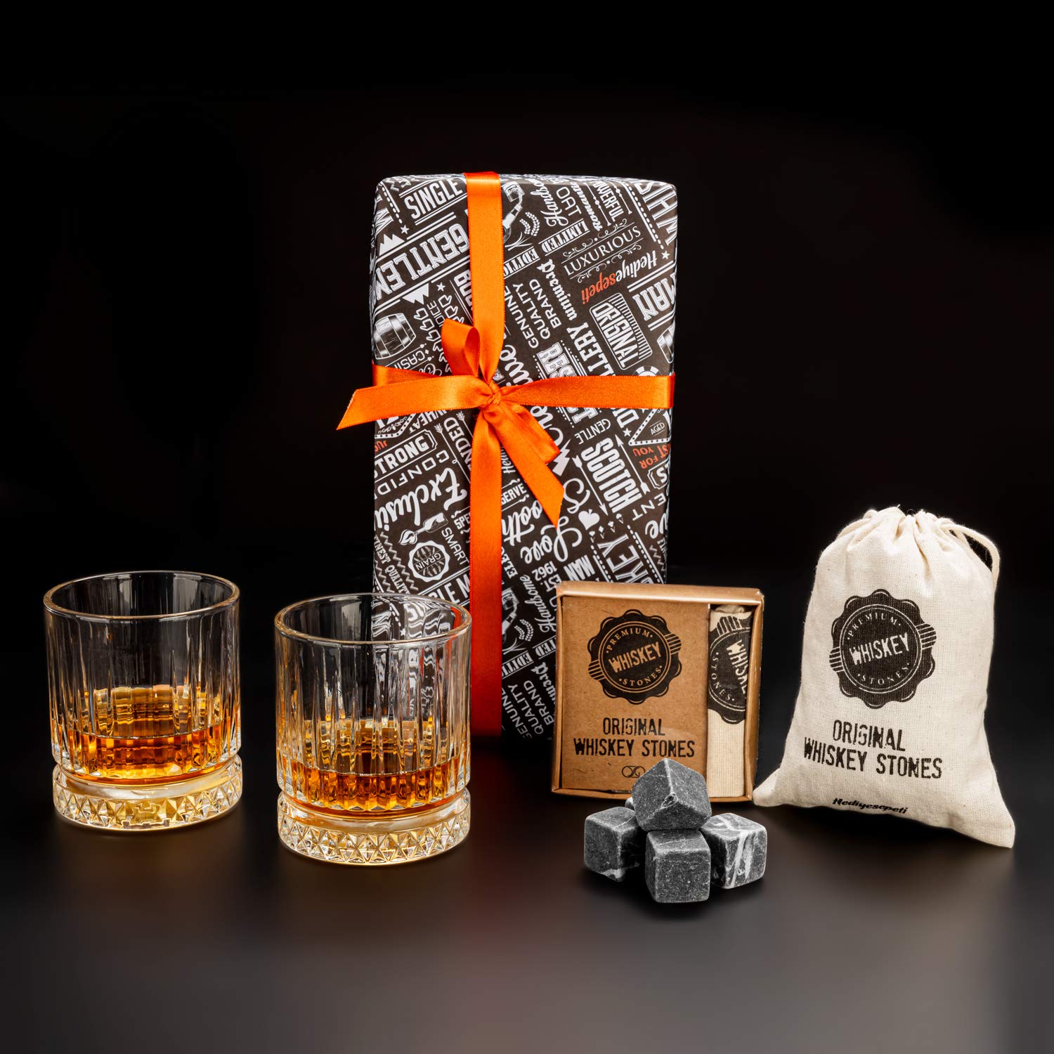 Whiskey stones and glasses gift set, 2 whisky glasses, whisky gift set for men, whiskey glass set as a 40th birthday gift for him.