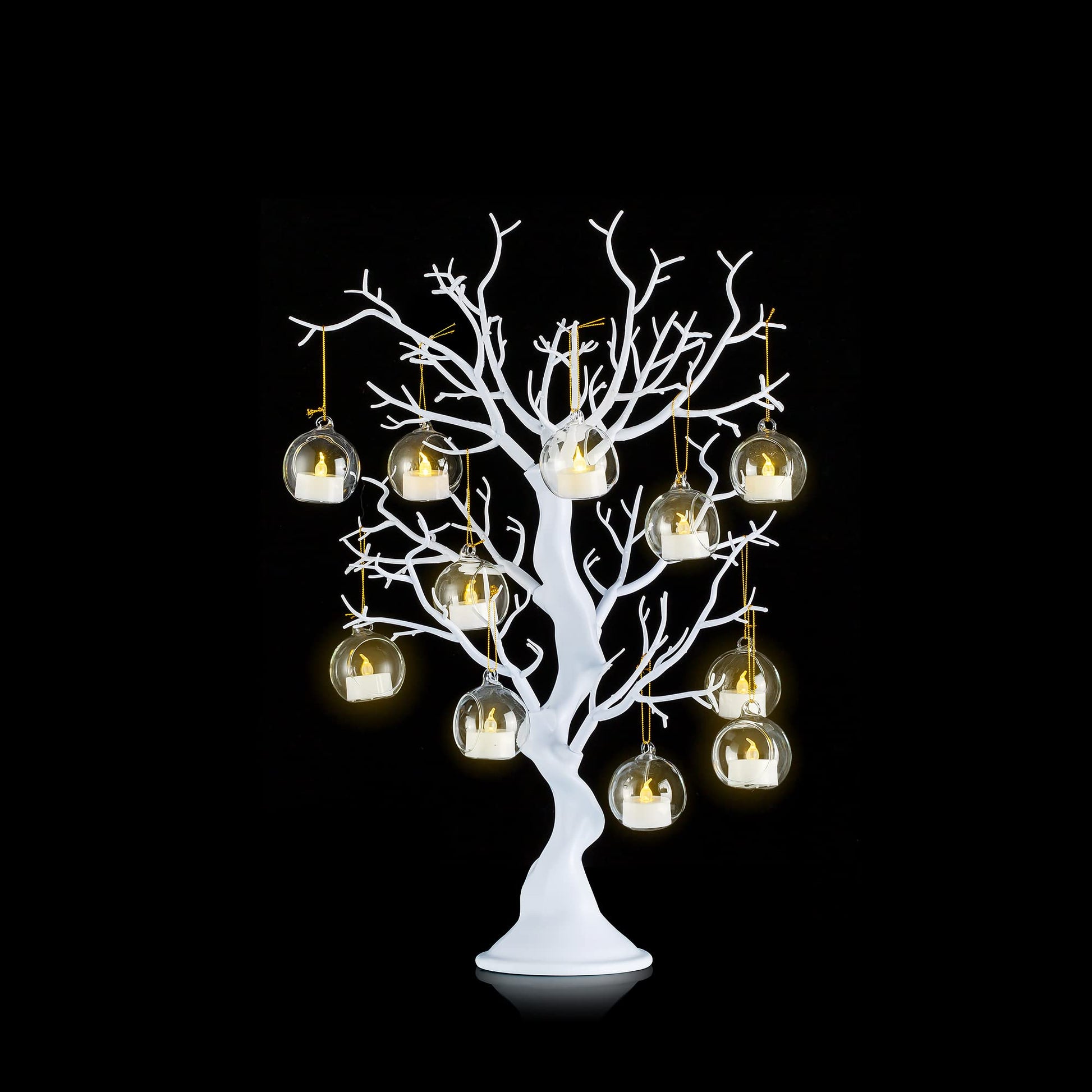 ["Life-like appearance & sturdy: This Manzanita tree centerpiece is made of high-quality plastic, the texture on the surface of the branches is similar to a real tree, making it more vivid and realistic. And the main trunk of the decorative tree is heavy enough, sturdy and stable, and can hold a weight of 1.1 lbs. In addition, we have improved the branches so that you can attach all kinds of decorations without worrying about it falling or wobbling.","DIY: Want a table decoration that stands out from the traditional ones? Let your imagination run wild and create a unique table centerpiece with this white tree! Whether you want to hang Christmas ornaments, balls, string lights, tea lights, photos depicting your happy memories, or a wishing tree for your guests, this table tree decoration will work well and complement your other decorations!","Multipurpose: Manzanita tree tall is the ideal decoration for various occasions, whether it's weddings, Christmas, Easter, Thanksgiving, or Valentine's Day, you can match different decorations to create a unique tree table decoration. Furthermore, it is also the best choice for home decoration, placed on the porch, living room, garden, patio, or a candlelight dinner table, it will create a romantic, dreamy atmosphere.","Easy to assemble and disassemble. This artificial bare tree is very easy to assemble, you just need to screw the branch into the hole in the trunk, all without tools. When not in use, you can unscrew the branch from the trunk and put it back in the box, very convenient and space-saving!","Packing list & Size: Each memory tree comes with 1 piece of trunk and 7 pieces of branches. Size: Mesh height: 22.8 in / 31.5 in / 41.3 in, base diameter: 5.1 in / 5.9 in. Please note that all decorations are not included!"]