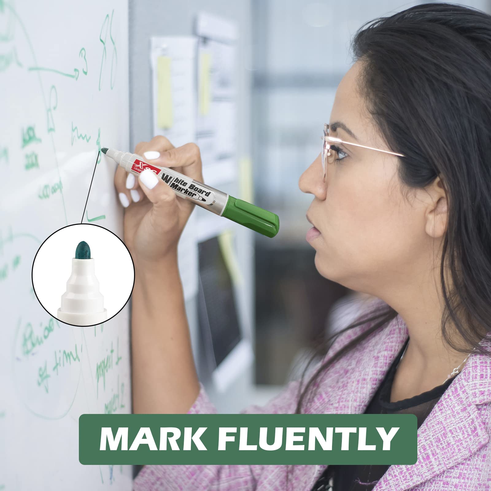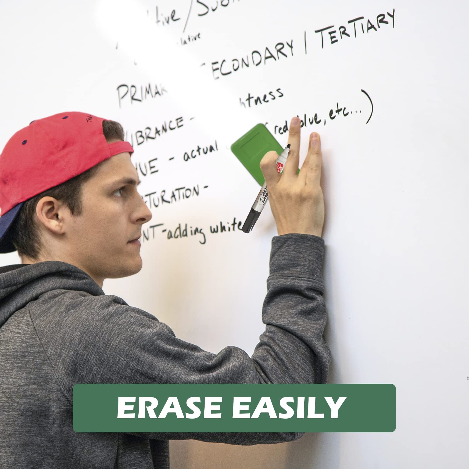 ["Wide range of applications: Dry erase marker rolls smoothly on most smooth surfaces such as cafe menu boards, bar and bistro menus, chalk labels, plastics, car windows, house windows, light panels, mirrors, etc.","easy to erase: Whiteboard markers can easily be wiped off whiteboards, glass, mirrors, and most non-porous surfaces with a cloth, paper towel, or felt eraser without leaving stains, streaks, spots, or smudges! If you want to try on a new surface, first test on a small area to see if it disappears before continuing your project","4 colors: Whiteboard markers, including red, blue, green, and black whiteboard markers. Easy-to-read markings in classrooms or conference rooms with durable, bright ink. Colorful whiteboard markers help you create better","Safe and odorless: The environmentally friendly marker is safe, Xylene and Toluene free, and environmentally friendly. Whiteboard markers meet ASTM D-4236 and EN71 standards. We recommend that children under 3 years old do not use it without a guardian","100% Satisfaction Guarantee: We will address and solve any product issues for you immediately. We offer a full refund if there is any damage during shipping"]