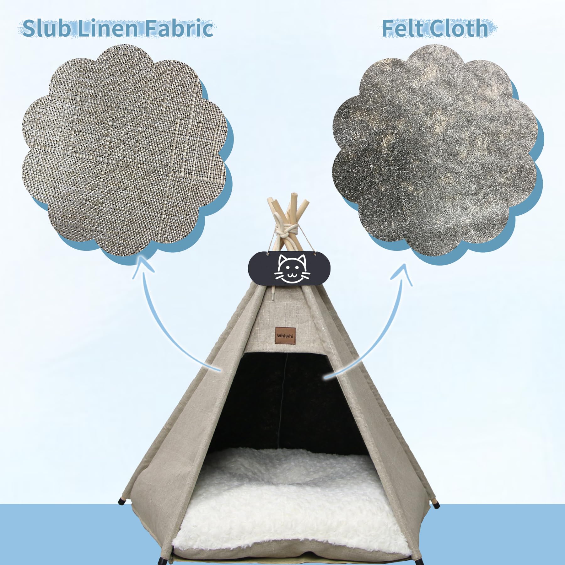 Whiwhi Tipi tent for pets, dog tent, cat tent with washable cushion. Pet tents, houses, dog caves, and pet houses. Foldable pet tent furniture 50x50x60cm.