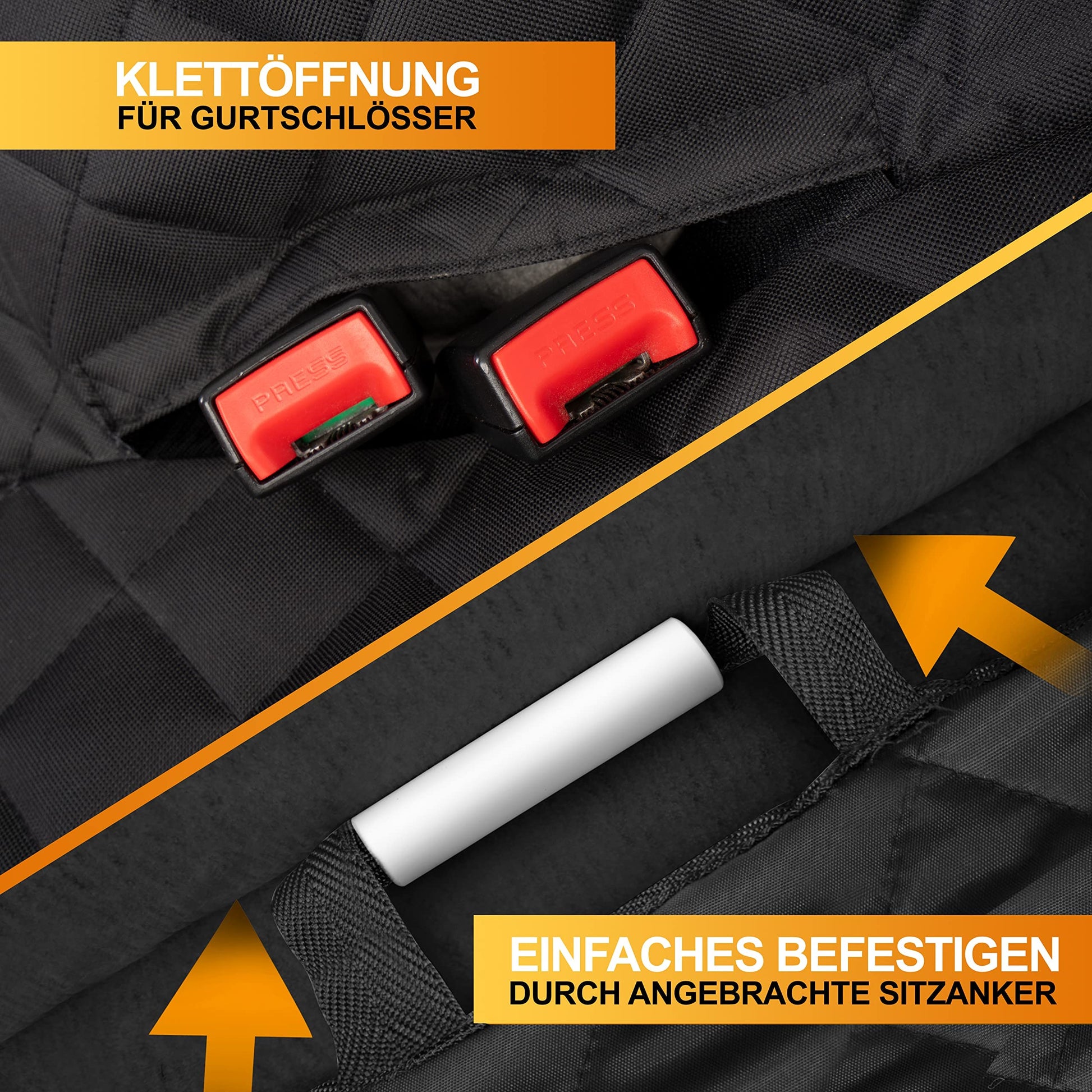 Easy installation: Attach the car seat cover in no time with the click fasteners on the headrests. The seat anchors on the back provide additional stability.
