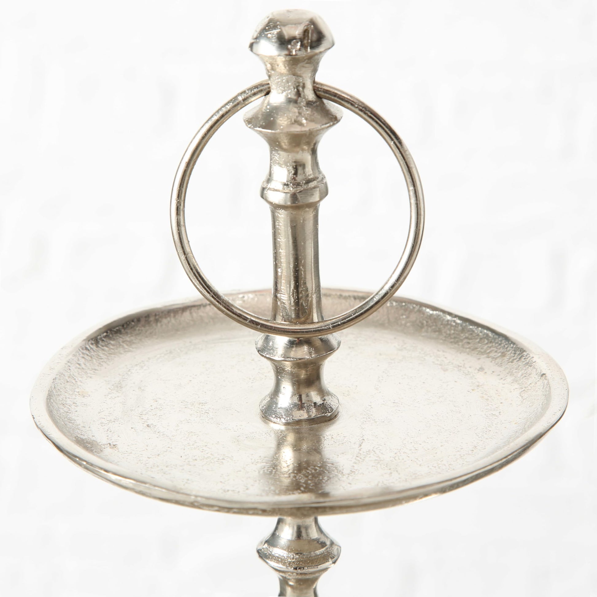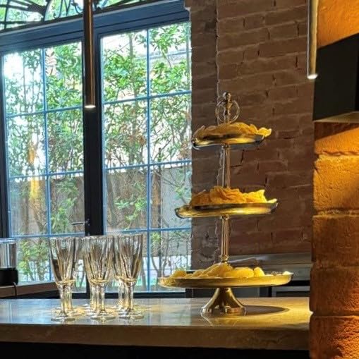 ["Five star elegance! Give your party a touch of luxury with our cake stand. Perfect for impressing your guests with stylish presentation.","Dimensions: 10.24L x 10.24 W x 18.90 H inches. The plates have diameters of 10.24, 7.68, and 5.51 inches each.","Made of high-quality silver-plated aluminum-nickel, this piece is easy to maintain. Simply wash with mild soapy water and dry with a towel. Can be easily disassembled for cleaning and storage.","Perfect for weddings, celebrations, and special occasions but also for daily use."]