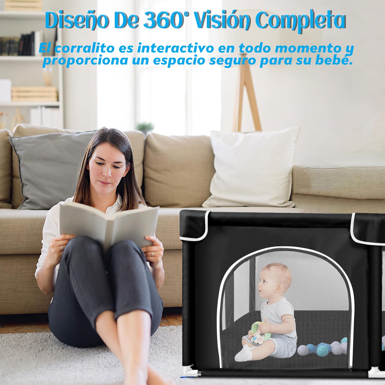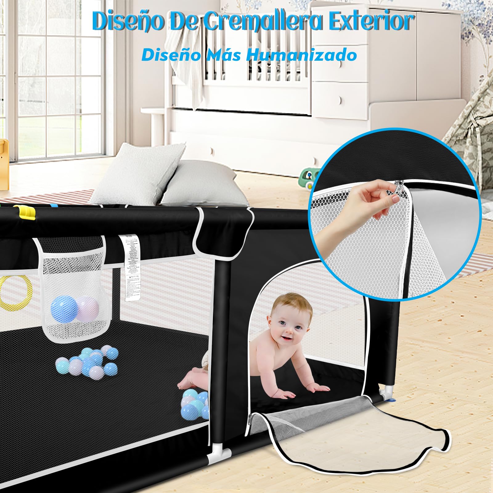 360° transparent design: The super soft and breathable mesh allows parents to see babies and interact with the outside environment, so babies feel comfortable playing and do not cry. The package includes 4 handrails and 50 balls. The baby can play in the playpen to exercise, play with toys, crawl, walk, read, and sleep.