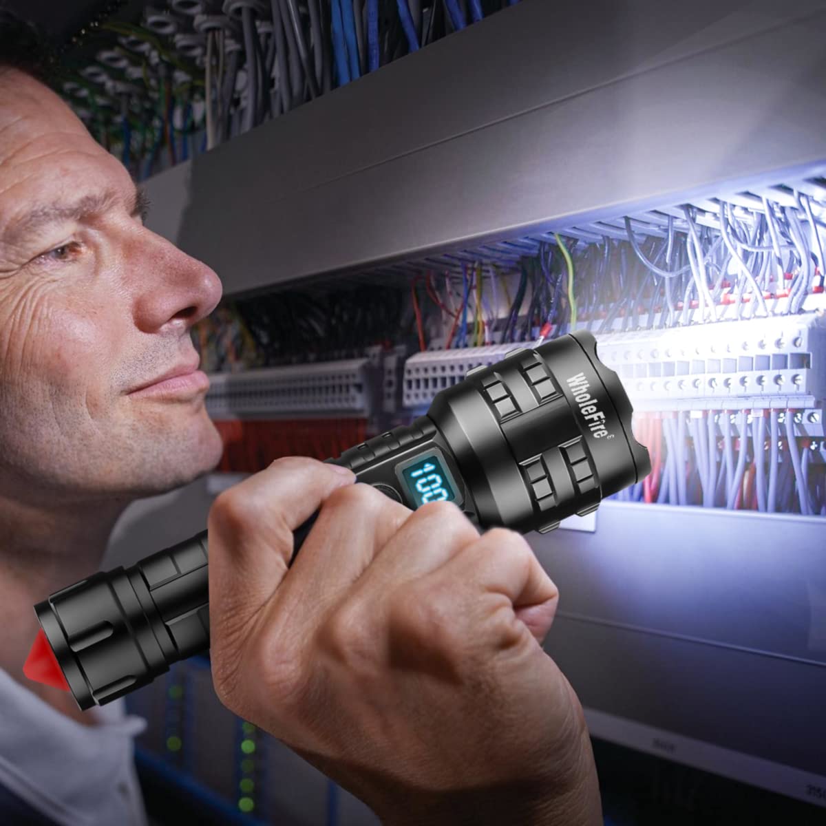WholeFire Flashlight LED, Super Bright Rechargeable 20000 Lumens LED Flashlight, Rechargeable XHP70.2 Powerful Flashlight Battery Operated Zoomable for Camping, Emergency Gift