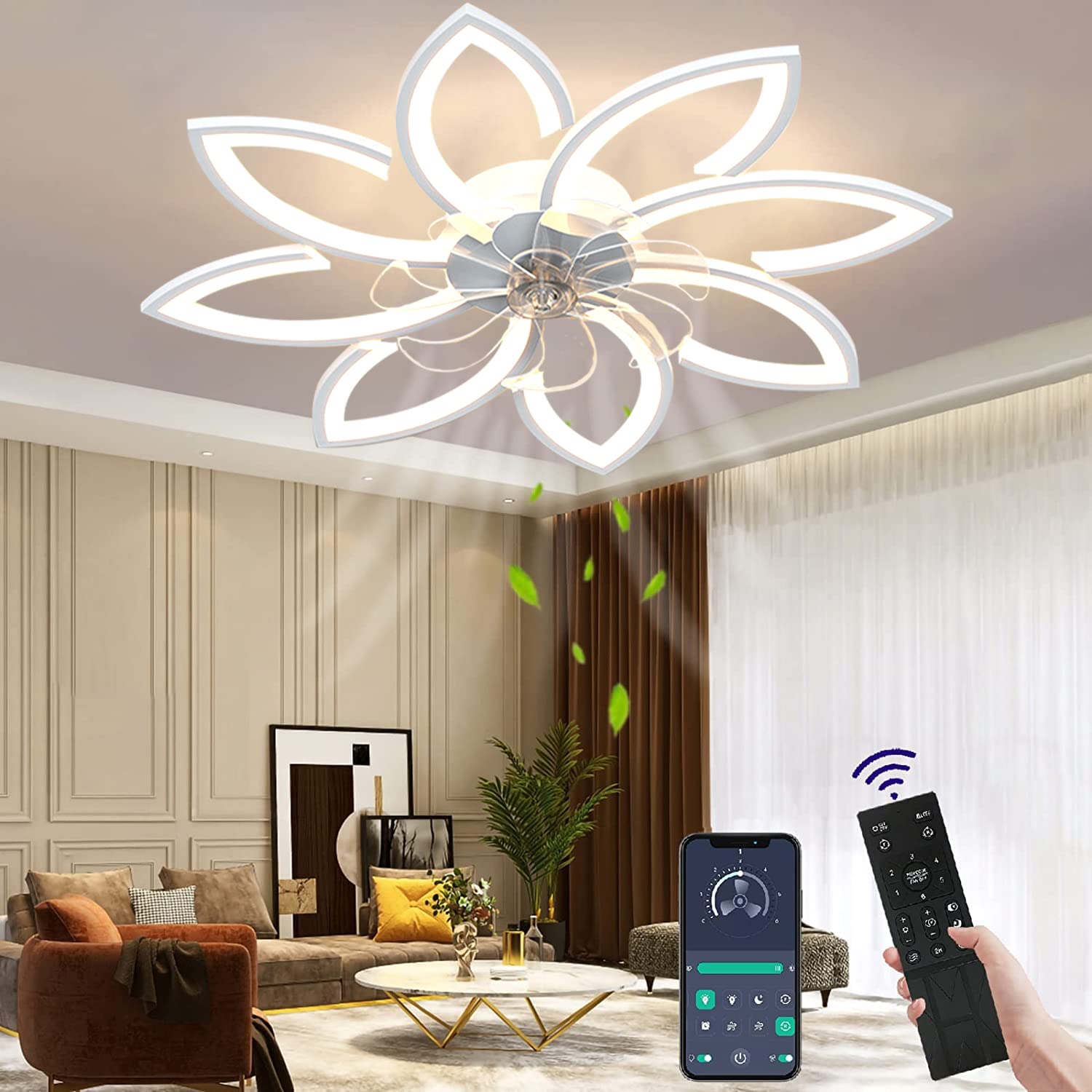 Wildcat Ceiling Fan with Light Quiet Modern LED with Remote Control Timer Flower Design Fan Ceiling Light for Bedroom Kitchen