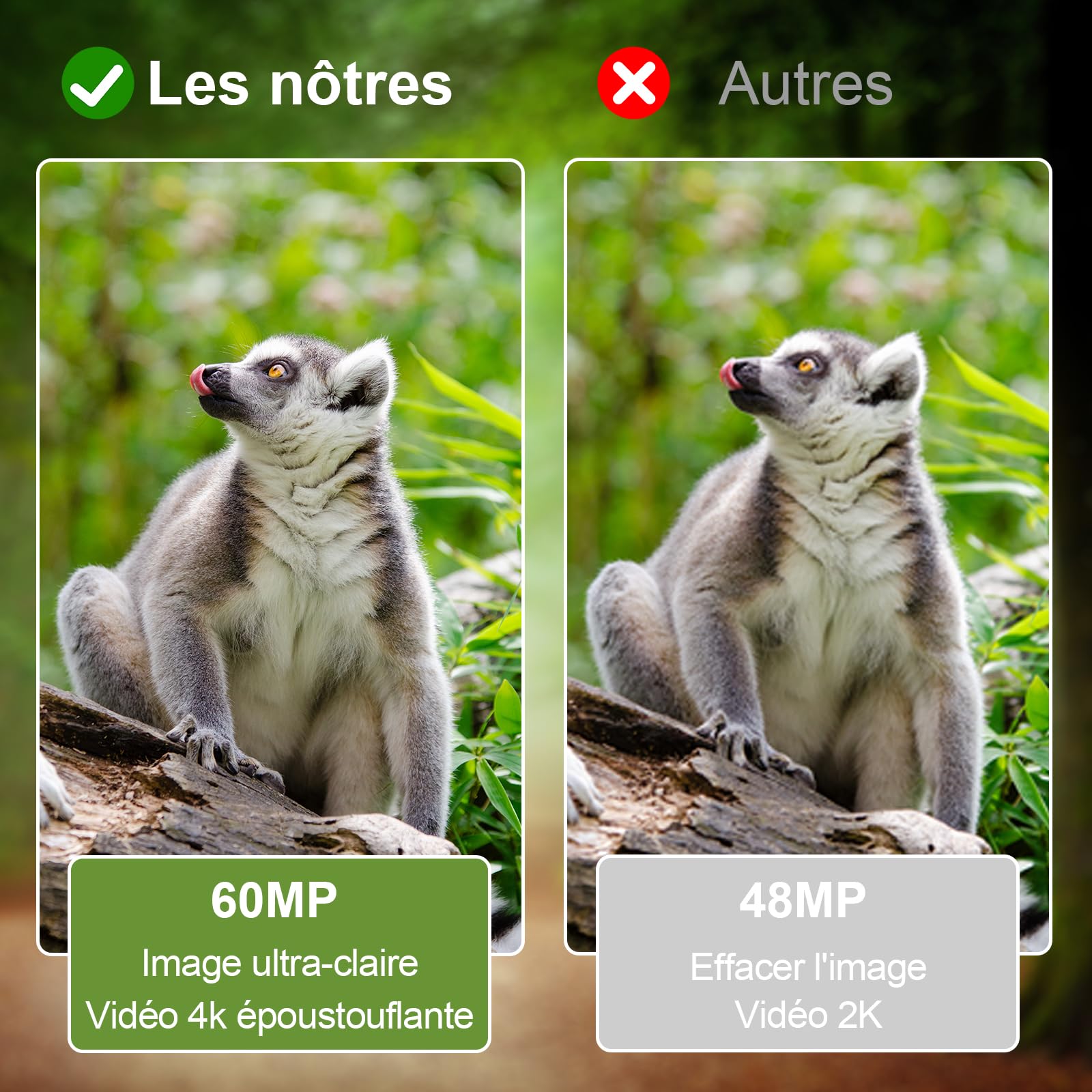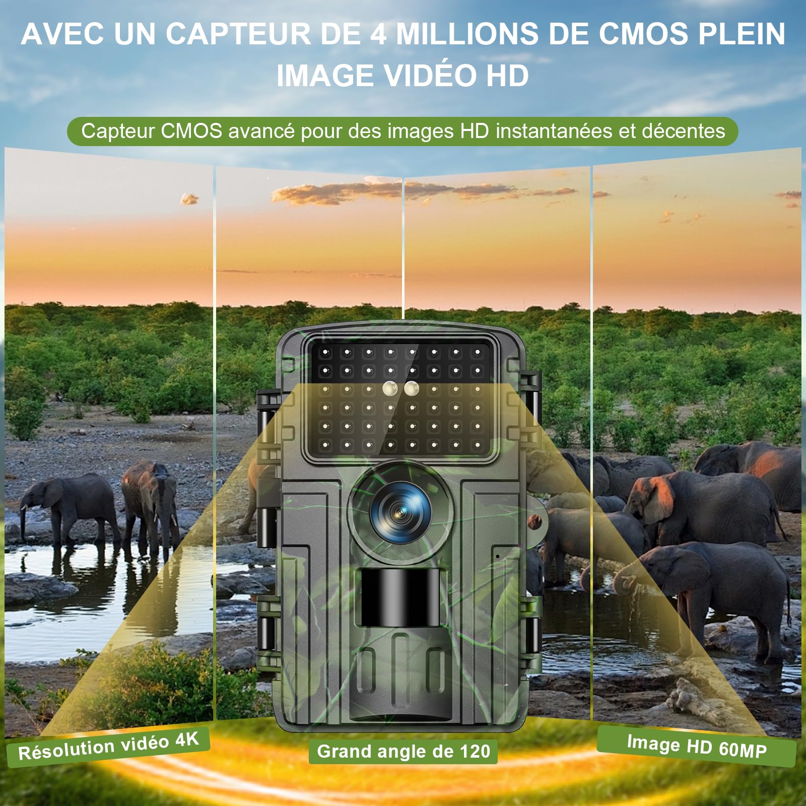 Wildlife camera, 4K video outdoor camera, 60MP Full HD WiFi with mobile transmission app, motion sensor, night vision, 0.1s trigger time, infrared camera with 32G memory card & card reader IP66 Waterproof.