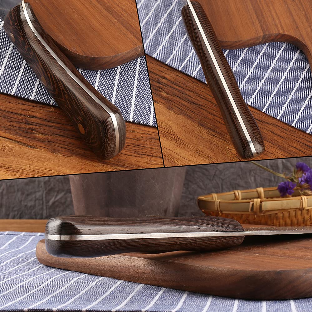 ["【Multifunctional Cleaver】 The 19.5cm cleaver blade is extremely sharp and suitable for cutting meat, fish, vegetables, fruits, or other favorite foods except for bones. You can finish your daily kitchen cutting tasks and always be in your element by using it.","【Razor-sharp Edge】 The knife has been vacuum heat treated and cooled, the steel is extremely hard. This is a handcrafted knife made of carbon steel and manganese steel. It has a small and fine body, light weight, and a sharp edge. This makes it convenient for cutting. You may need to keep it clean and dry after each use to resist rust.","【Ergonomic Handle】 The wave-shaped full tang handle design of the chef's knife makes it easy to grip and maneuver effortlessly, preventing the meat cleaver from collapsing or falling. Premium Wenge wood handle with 3 copper nails make the knife easy to hold, so you won't feel tired when using it for a long time.","【Special Design】 The hand-forged cleaver is well-designed and features a beautiful and practical inner shoe. The excellent balance and weight make cutting more enjoyable and powerful. Classic Forged Texture looks advanced and beautiful.","【WILDMOKs Commitment】 Quality is a major focus of our products. If you, as our customers, open the package and receive our product with quality issues, we will be happy to provide you with a replacement."]