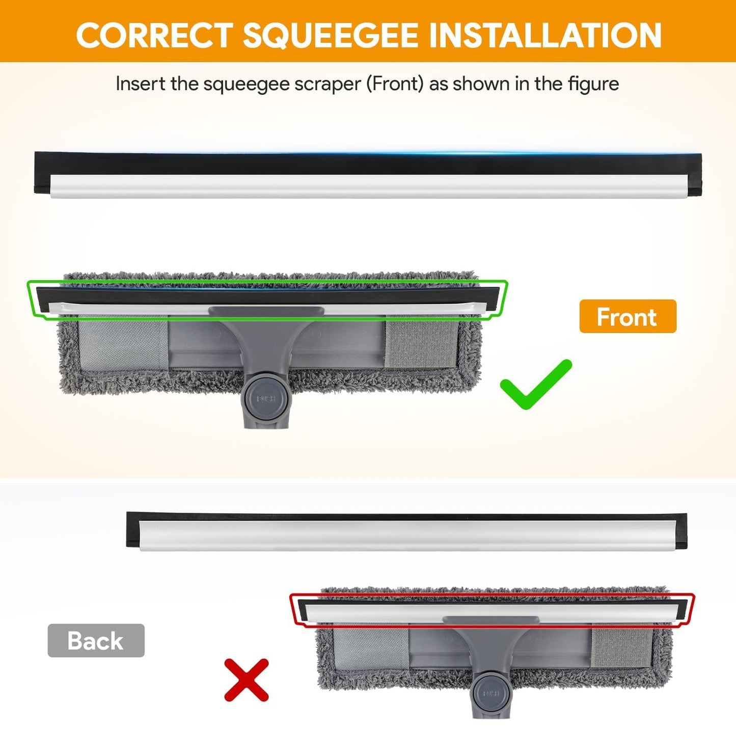 ["【2 IN 1 Window Cleaner】This window squeegee features a 10-inch blade and a microfiber cleaning cloth for optimal cleaning of all types of glass surfaces. This versatile window cleaner will make your windows and car glass shine and clean easily.","【Adjustable Length】Our multi-purpose window squeegee set comes with a 4-section aluminum extension pole that extends up to 63.7 inches. This window cleaner can be adjusted in length by adding or removing poles, improving the stability of the poles and allowing you to clean high or low spots. Installing the poles for the window cleaner is easy, you just need to twist to tighten the poles.","【Rotating Button & Angle Lock】The head of the window squeegee can be adjusted at 7 angles. You can press the button to rotate the window washer head to the corresponding angle, then release to lock the angle. This allows you to clean many windows.","【Microfiber Cleaning Cloth】Keep your windows crystal clear with this super absorbent cloth that quickly wipes away excess water and soap. The microfiber cloth in our window cleaning set absorbs moisture instantly, leaving your windows clean and dry in no time. Perfect for making your home look flawless and radiant.","【Install the Rubber Blade】When installing the rubber blade, please differentiate between the front and back sides, more black rubber part is the front of the rubber blade, which will not scratch your window when it touches the window. If you have any questions or need assistance, please contact us."]