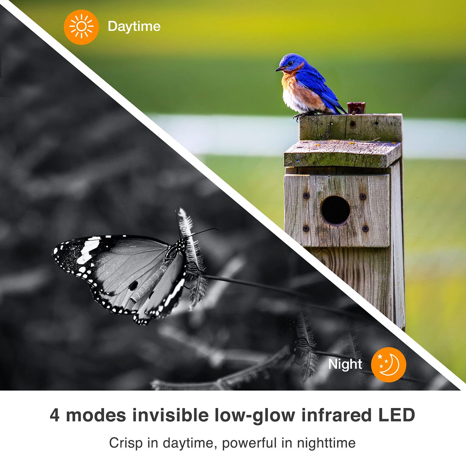 ["【Leica M6 Solution】The WingHome Trail Camera uses the advanced Leica M6 Solution to provide you with fantastic, clear image quality. The WingHome 630 is like a DSLR camera for wildlife monitoring. Thanks to its compact size, the camera is suitable for all your outdoor activities such as hiking, hunting, bird watching, and camping. The simple and sophisticated Leica M6 Solution is here to redefine your trail camera experience.","【Invisible Infrared Night Vision】The WingHome game cameras are equipped with advanced, invisible 850nm infrared technology that intelligently detects light and switches between color and black-and-white modes. 4 flash night modes allow you to capture the best vivid image at night. With 1080p Full HD video quality, 16-megapixel crystal image, 2.31-inch TFT screen, and video resolution of 1902 x 1080p, you can capture the true colors of the world.","【0.4S Ultra-Fast Trigger Speed】When animal movement is detected, the hunting camera will trigger within 0.4s and capture the animal's moment instantly. All unforgettable moments are fully recorded. The camera supports 16-megapixel images and 1080p HD videos. With 5 series shots, you will never miss a single angle. With a maximum detection range of 20 meters and a 100° wide angle, you can capture everything in front of you.","【IP66 Protection in Extreme Weather】The unique construction of the hunting camera makes it waterproof to IP66 to withstand all types of outdoor weather conditions. Waterproof, dustproof, and rustproof, all in one. Whether it's snowing or raining, the deer hunting camera works perfectly and is reliable in operation from -25°C to 60°C. It is suitable for wildlife observation and deer exploration.","【Customer Support】WingHome puts customers first and makes every effort to protect the interests of our customers. Enjoy 1 year warranty and customer service with every purchase. A trail camera can meet your needs in hunting, home security, bird watching, wildlife monitoring, farm security, property surveillance, and other areas."]